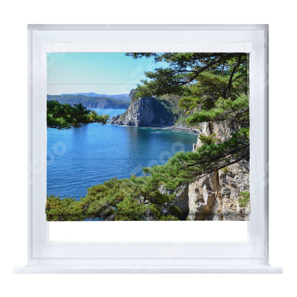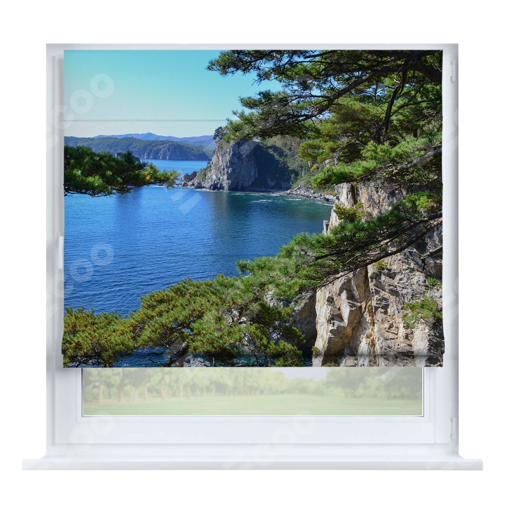 Римская штора «Кортин» на створку «Море и сосны» предоставлена в следующих характеристиках: