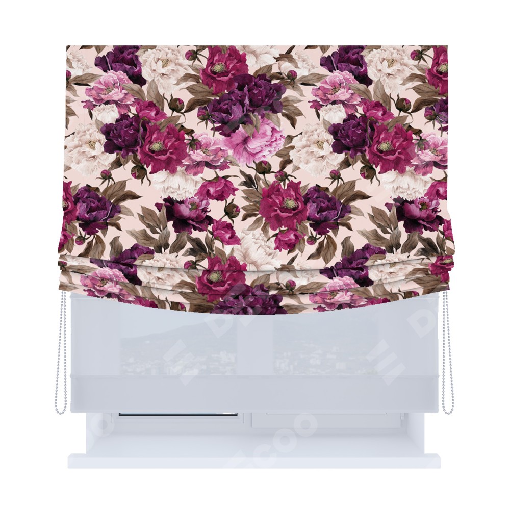 Римская штора «Кортин», день-ночь с мягкими складками, «Великолепные пионы» доступна к заказу по любым размерам. Её артикул: 25105. Стоимость пошива будет зависеть от выбранных опций и начинается от 5 300 руб. В интернет-магазине Decoo есть возможность выбрать товар в любых размерных вариациях.