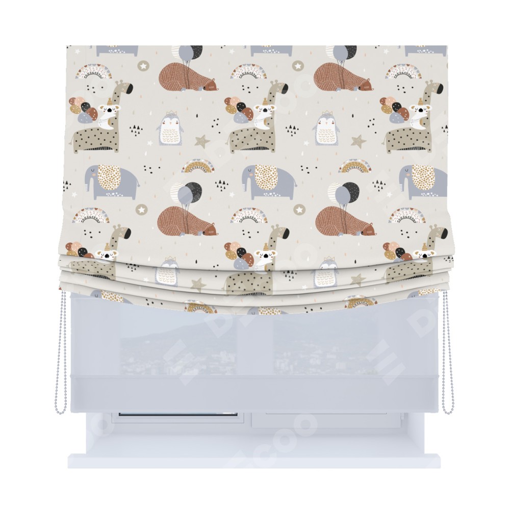 Римская штора «Кортин», день-ночь с мягкими складками, «Вечеринка животных»