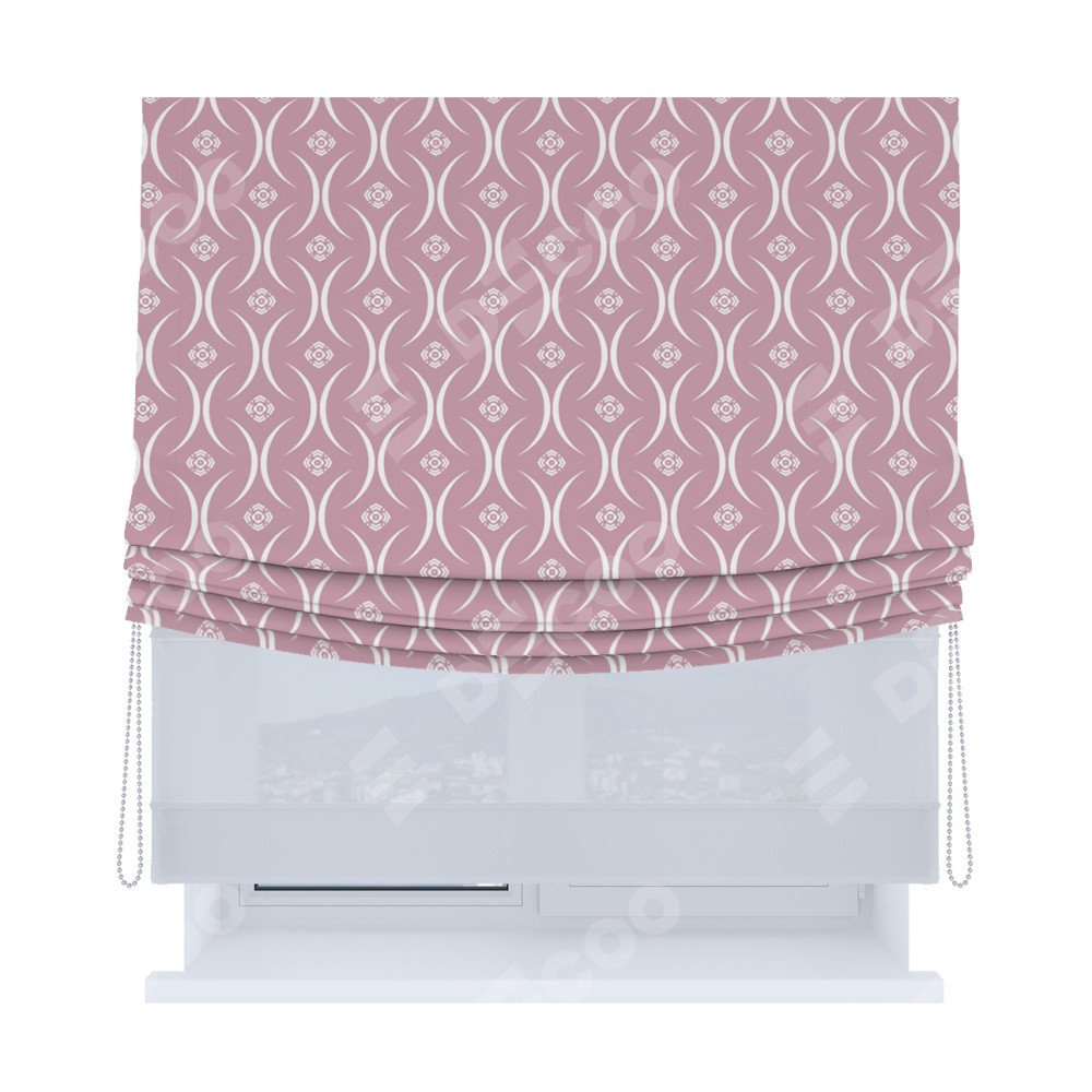 Римская штора «Кортин», день-ночь с мягкими складками, «Воздушный узор розовый»