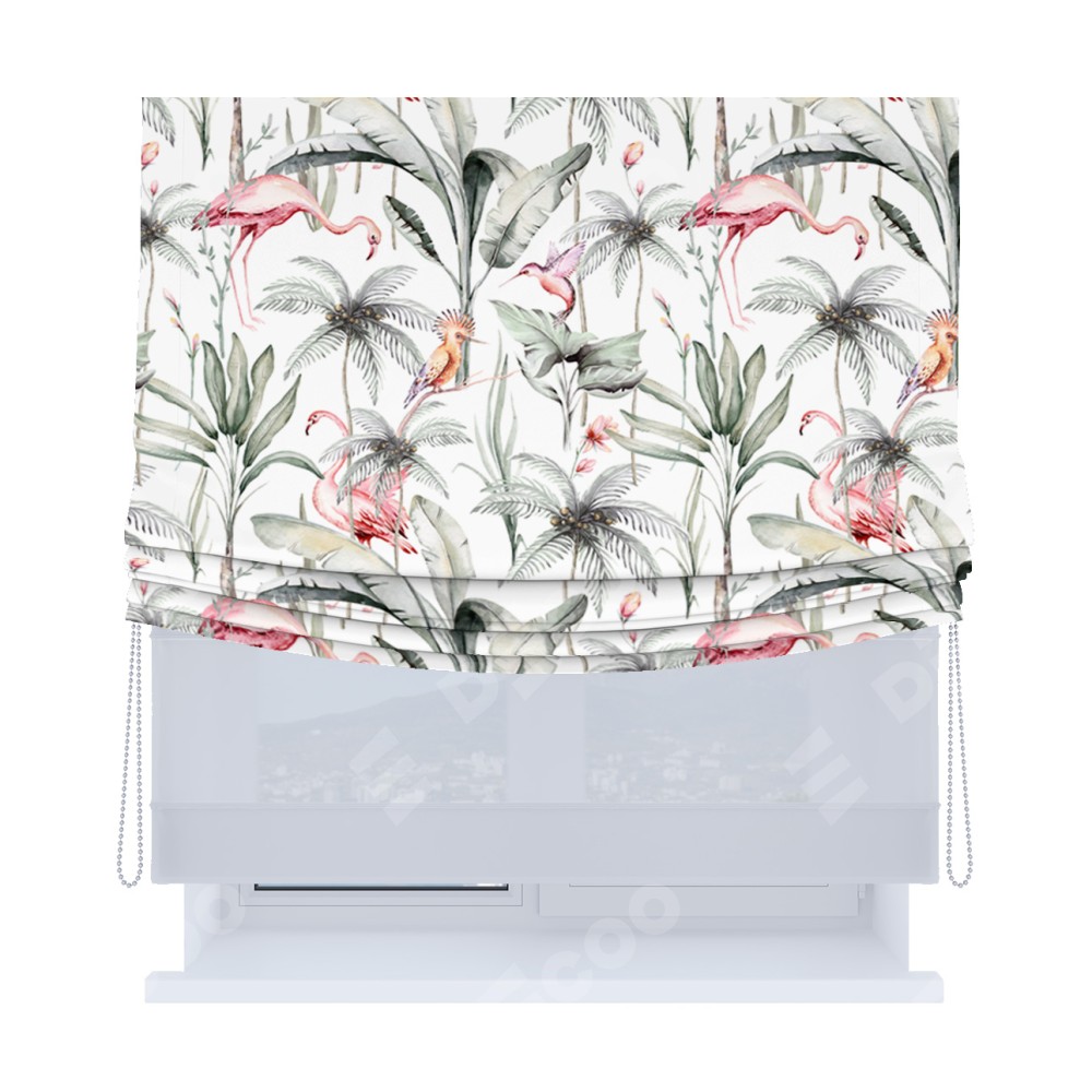 Римская штора «Кортин», день-ночь с мягкими складками, «Изящные фламинго»