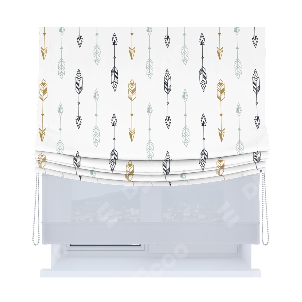 Римская штора «Кортин», день-ночь с мягкими складками, «Любимые стрелки» представлена к заказу по индивидуальным размерам. Рабочий артикул: 25215. будет зависеть от размерных характеристик и будет начинаться от 5 300 руб. В интернет-магазине Decoo вы можете купить товар в любых размерных вариациях.