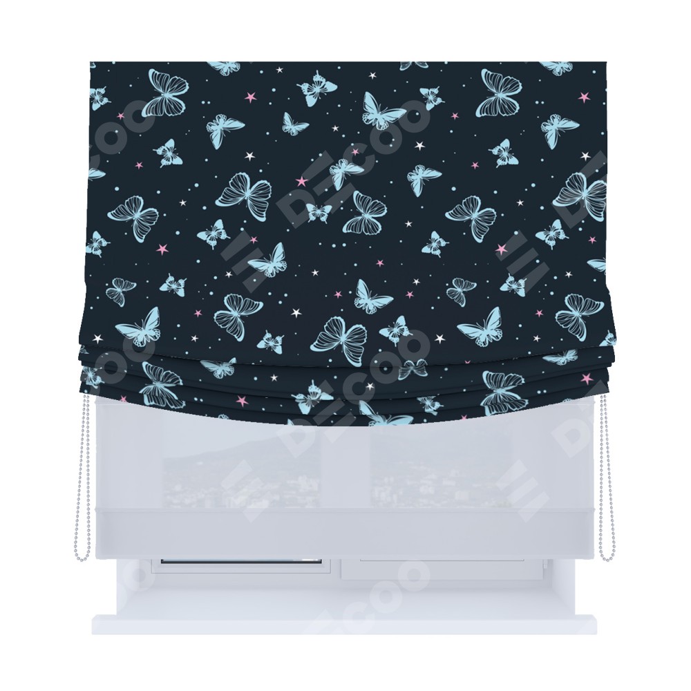 Римская штора «Кортин», день-ночь с мягкими складками, «Неоновые бабочки»