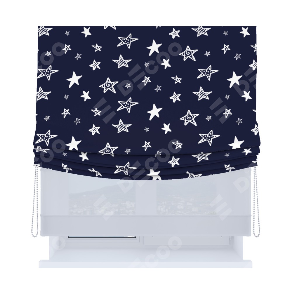 Римская штора «Кортин», день-ночь с мягкими складками, «Ночные звёзды» представлена к заказу по по вашим размерам. Её артикул: 25244. будет зависеть от выбранных опций и стартует от 5 300 руб. В интернет-магазине Decoo есть возможность выбрать товар в любых размерах.