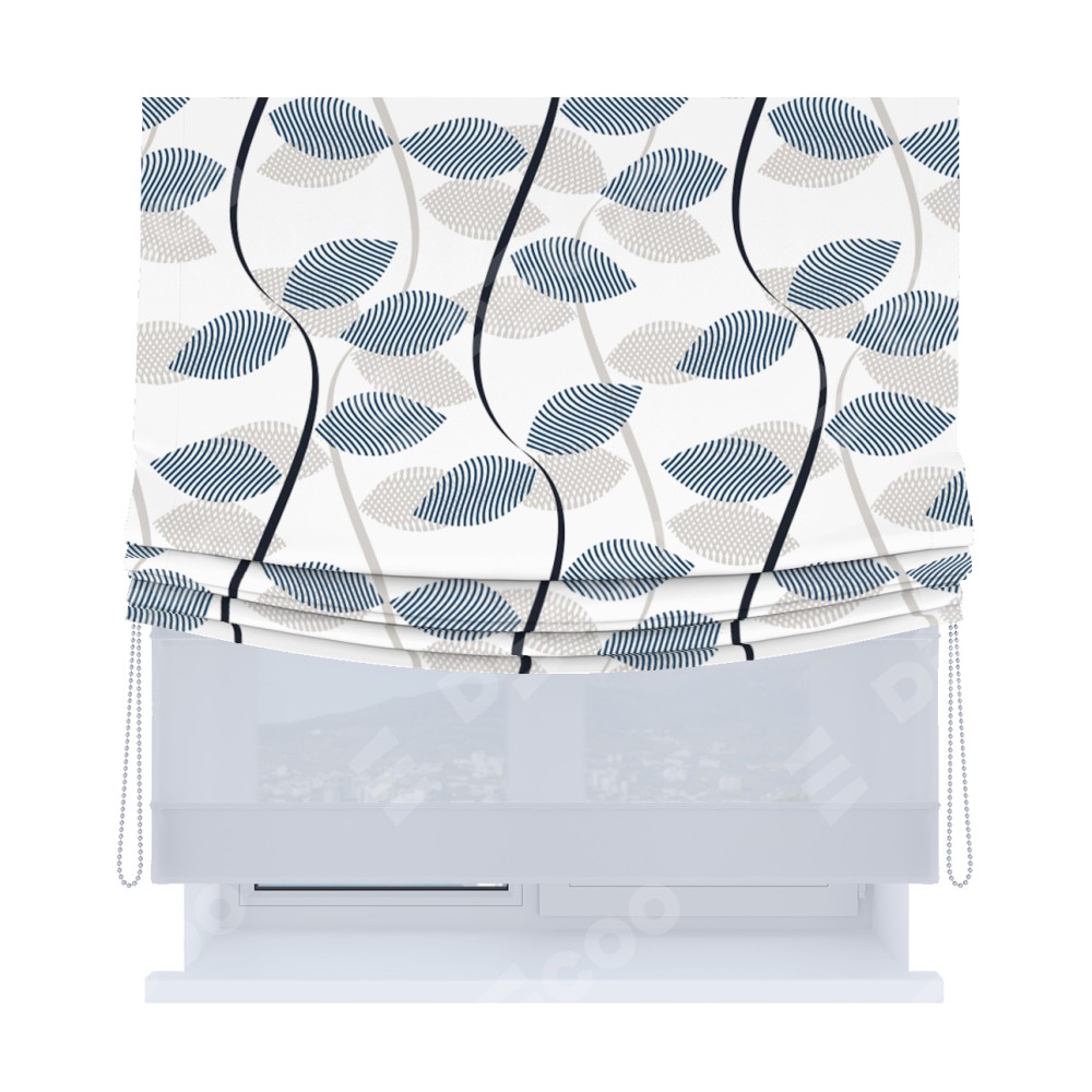 Римская штора «Кортин», день-ночь с мягкими складками, «Резные листья»