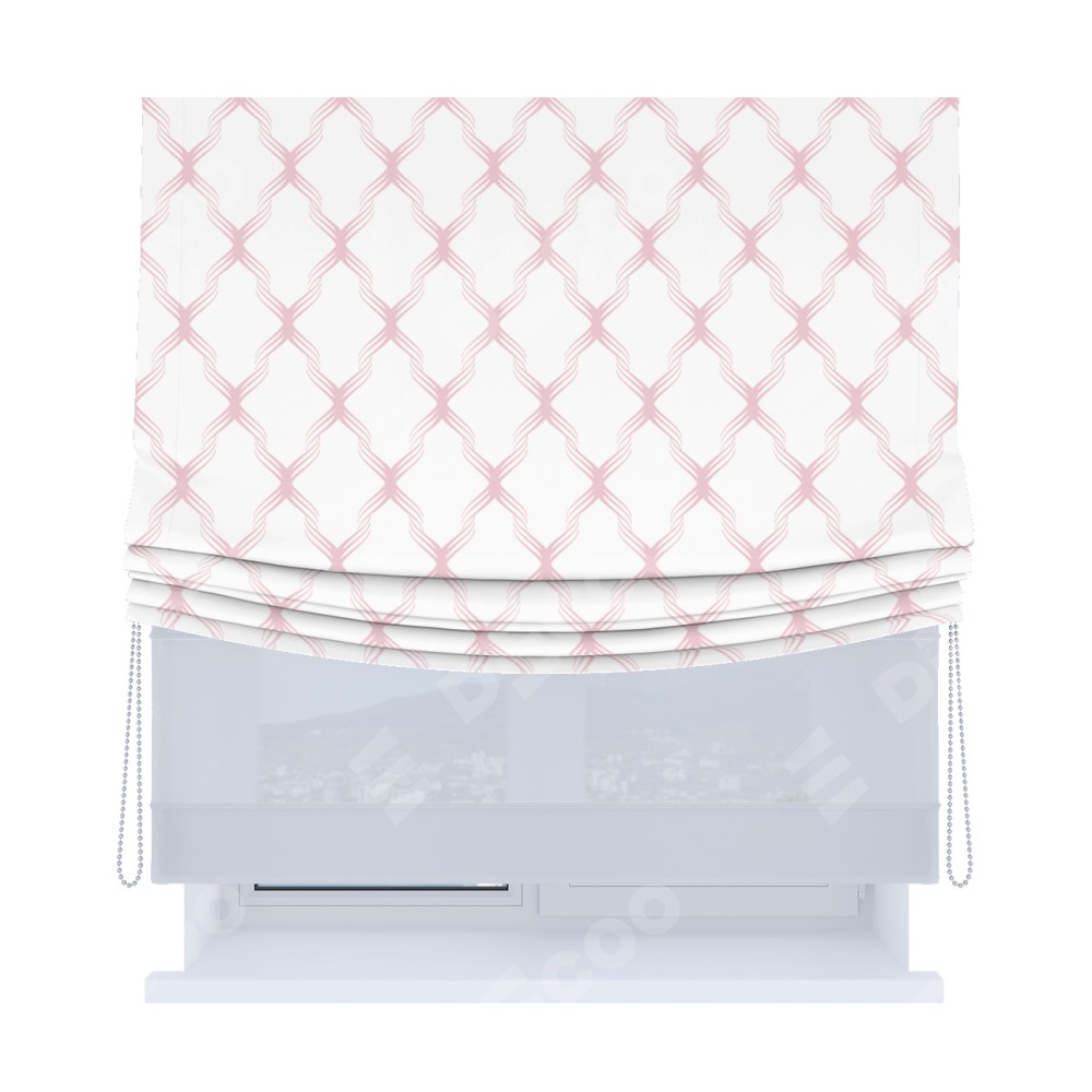 Римская штора «Кортин», день-ночь с мягкими складками, «Розовые ромбы»