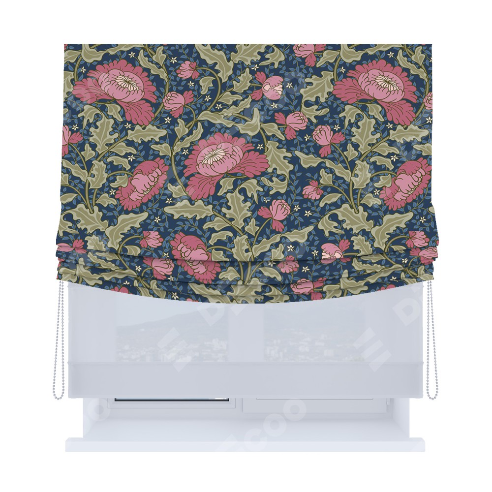 Римская штора день-ночь производителя «Cortin», используется для проёма, пошита из двух полотен, с лицевой блэкаут с нанесением сублимационной печати «Розовые цветы», вторая ткань тюль (по стандарту комплектуется тюль белого цвета артикул V-01). Имеет универсальный механизм и подходит для монтажа: на потолок, на стену и в нишу. Удобное управление каждой шторой отдельно.