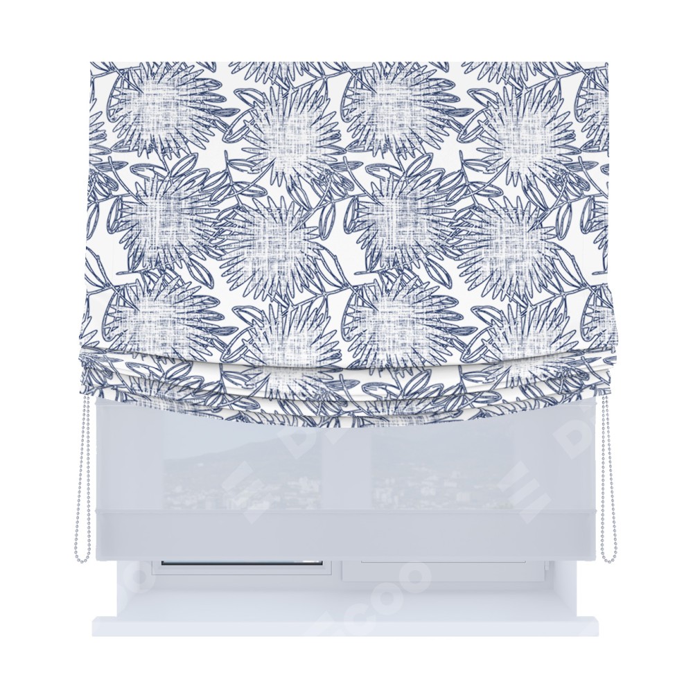 Римская штора «Кортин», день-ночь с мягкими складками, «Синий букет»