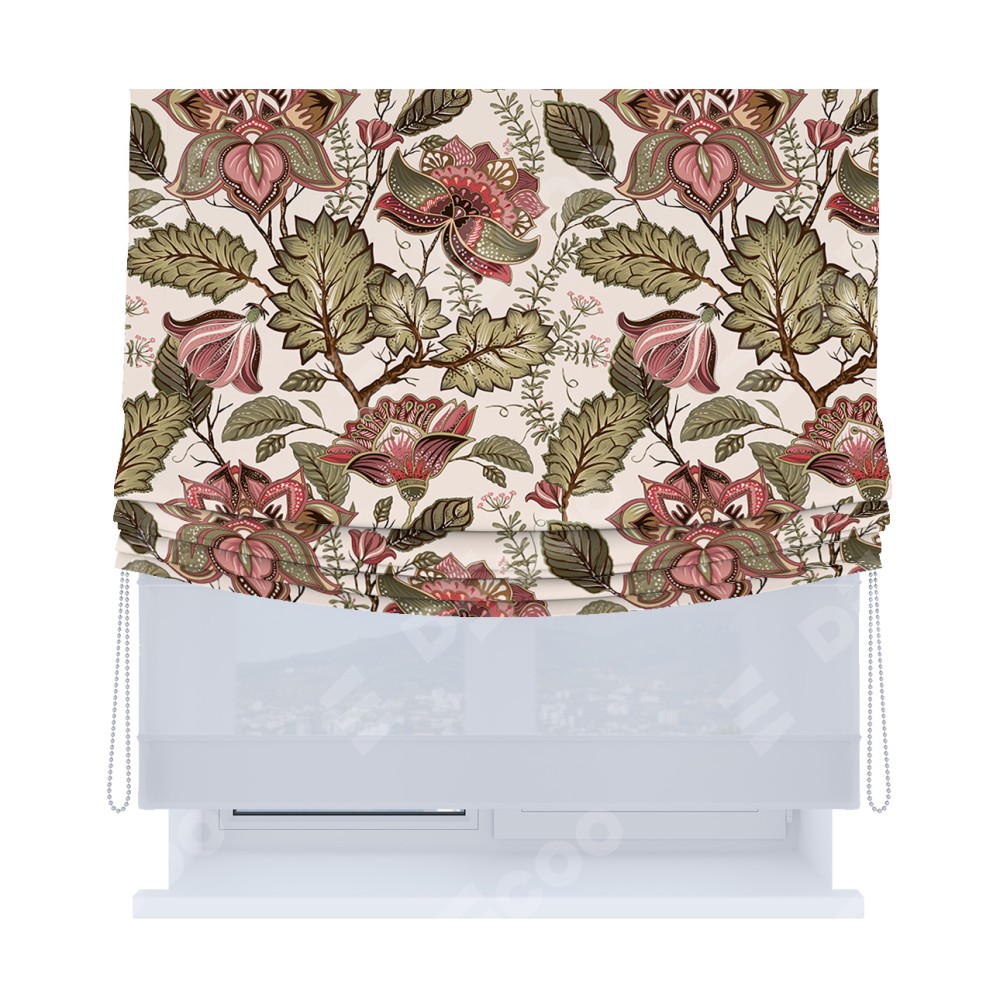 Римская штора «Кортин», день-ночь с мягкими складками, «Старинные цветы»