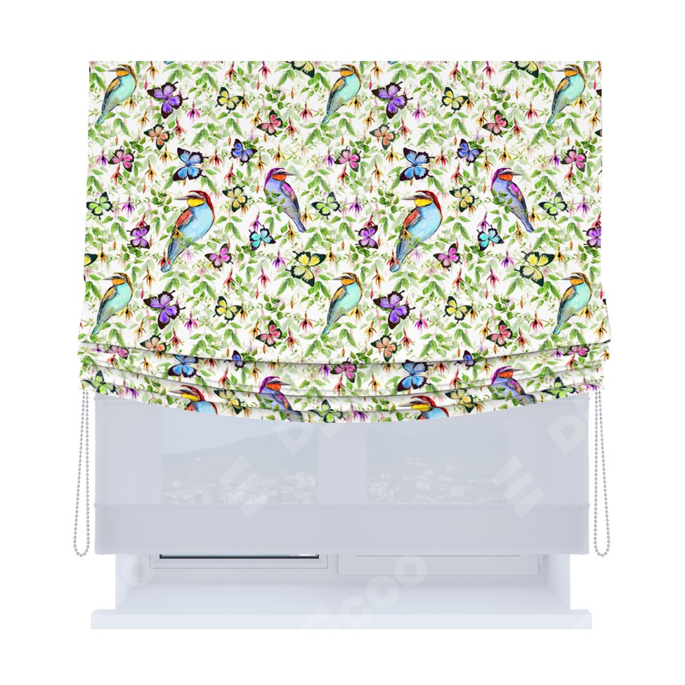 Римская штора «Кортин», день-ночь с мягкими складками, «Тропические птицы»