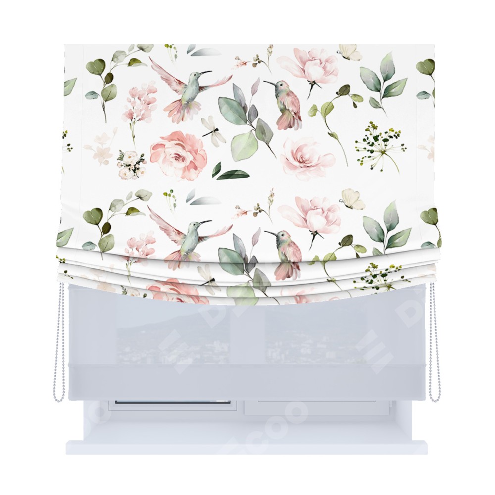 Римская штора «Кортин», день-ночь с мягкими складками, «Уютный сад»