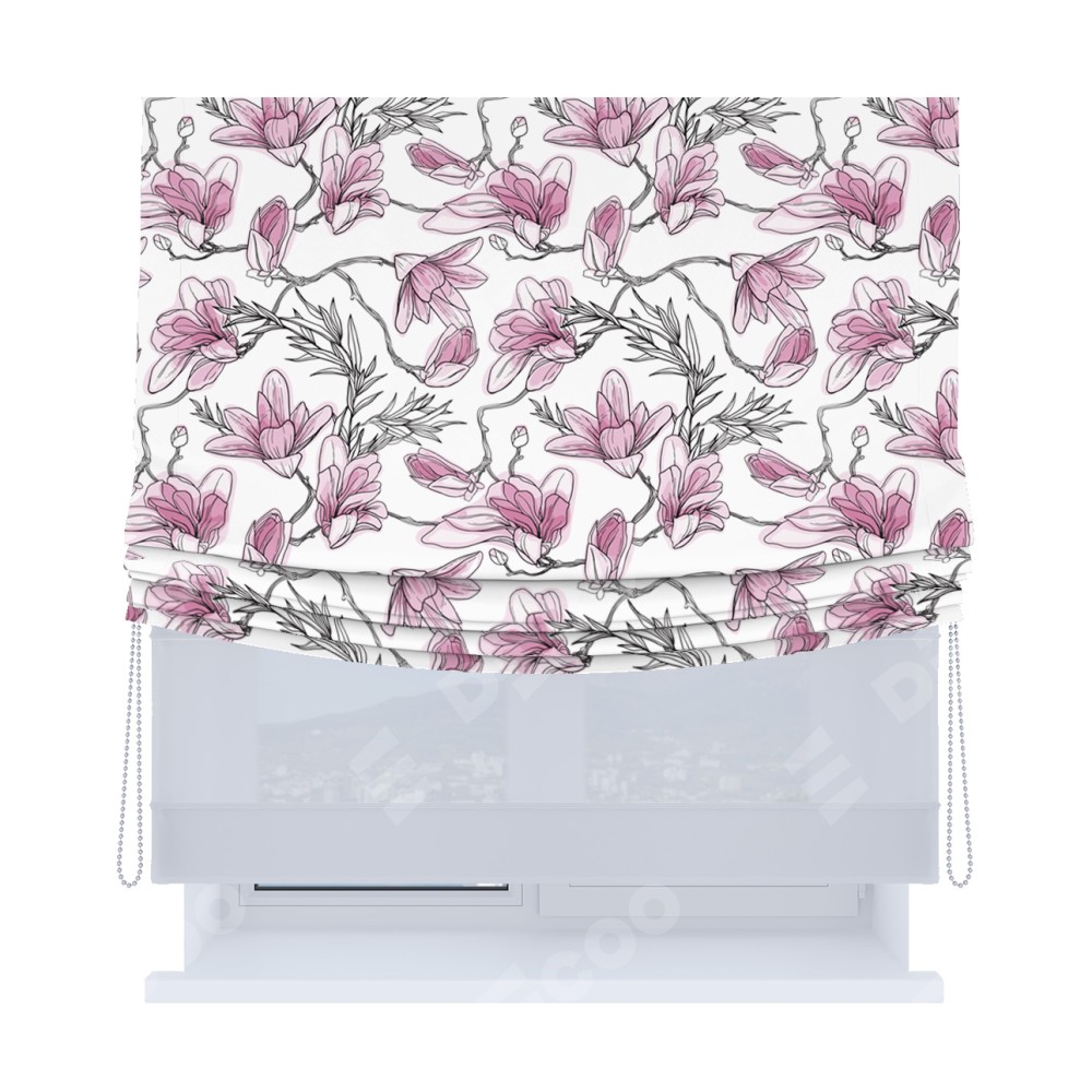 Римская штора «Кортин», день-ночь с мягкими складками, «Цветки магнолии»