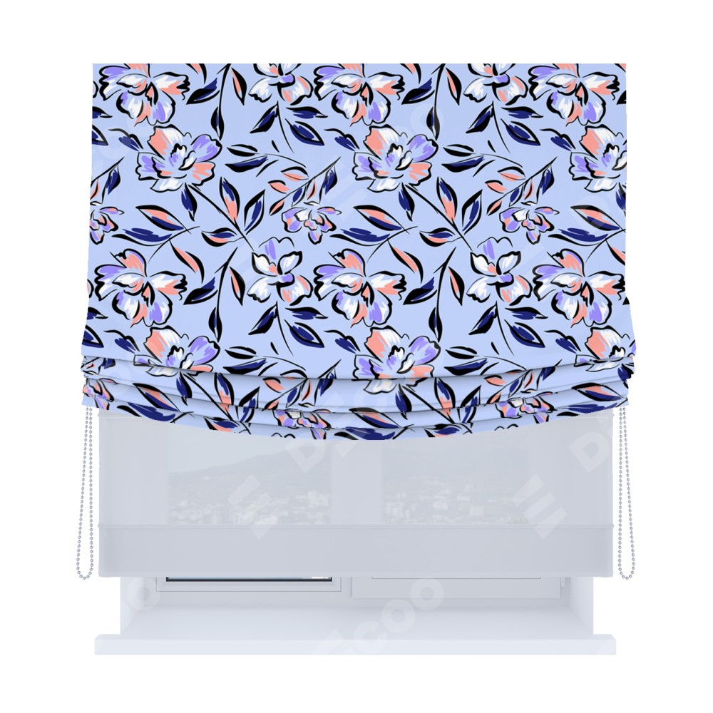 Римская штора «Кортин», день-ночь с мягкими складками, «Цветочки и листочки»