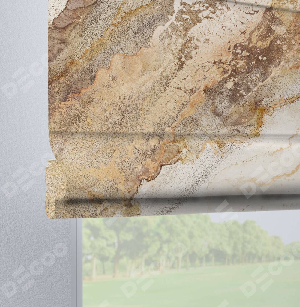 Римская штора на петлях «Бежево-золотой мрамор» отлично подойдёт для интерьера: в кухню, в спальню и подростку в комнату.