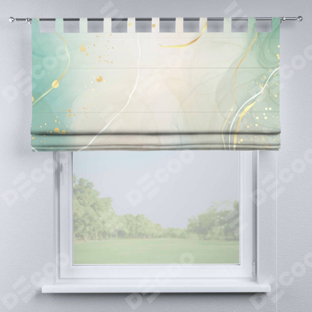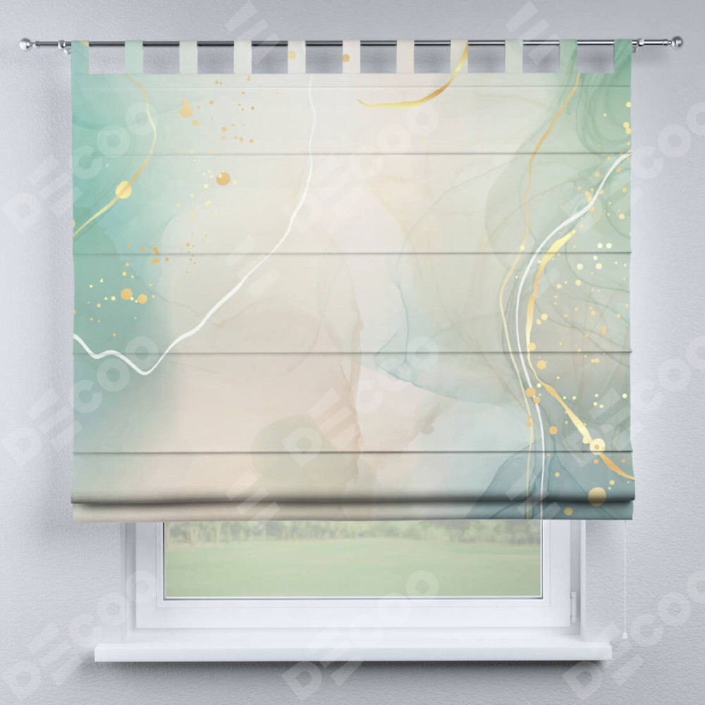 Римская штора производителя «Cortin», используется для проёма, пошита из ткани блэкаут с нанесением сублимационной печати «Изумрудно-серый мрамор». Данная модель пошита на петлях, комплектуется на выбор круглым карнизом и подходит для монтажа на стену. Римская штора на петлях имеет простую систему регулировки высоты, отличительным преимуществом данной модели является простой способ монтажа. Достаточно повесить ее на трубу и штора готова!