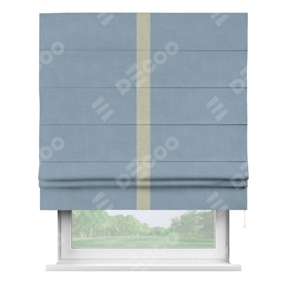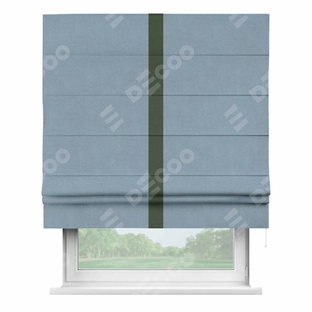 Римская штора «Кортин» с кантом Хайвэй, для проема, лён блэкаут голубой