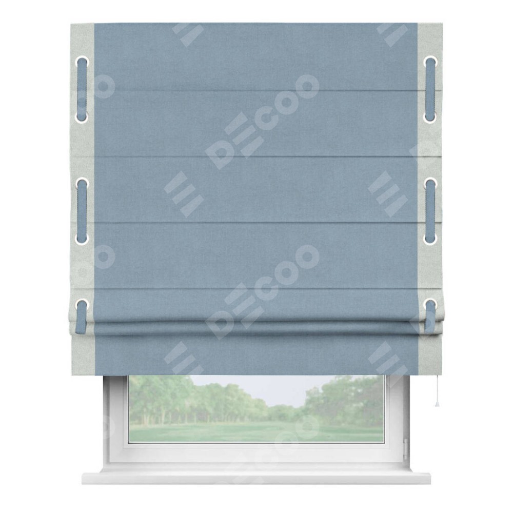 Римская штора «Кортин» с кантом Стрим Дуо (люверсы с пояском), для проема, лён блэкаут голубой