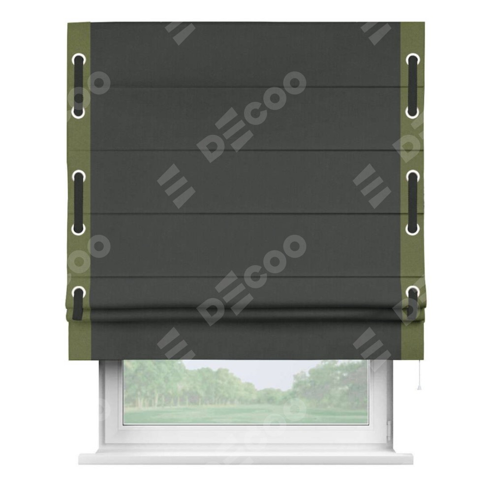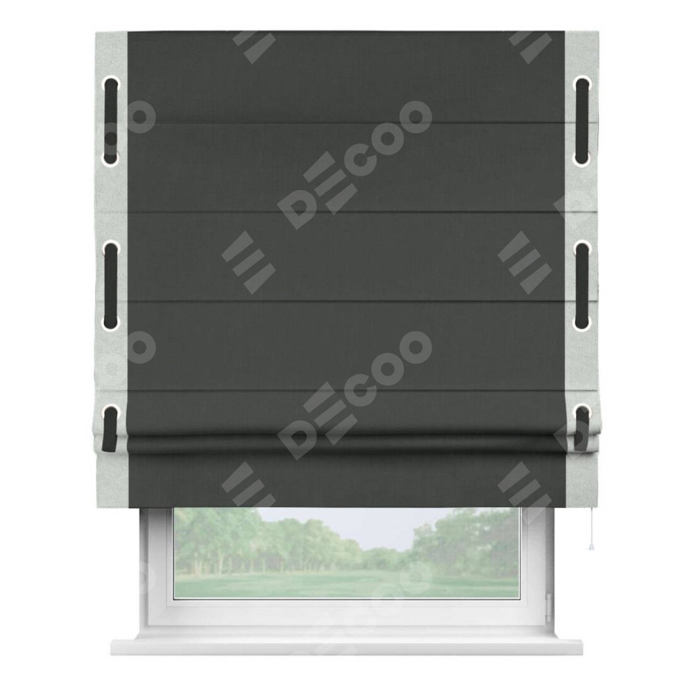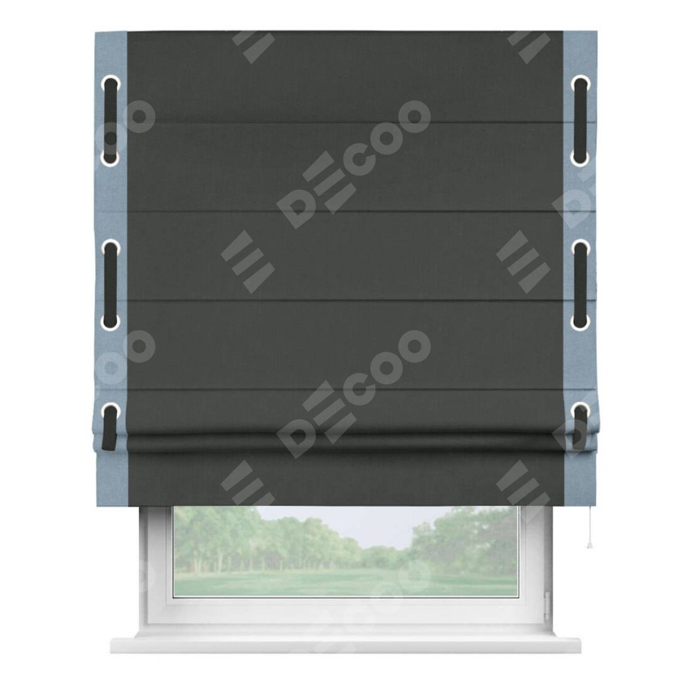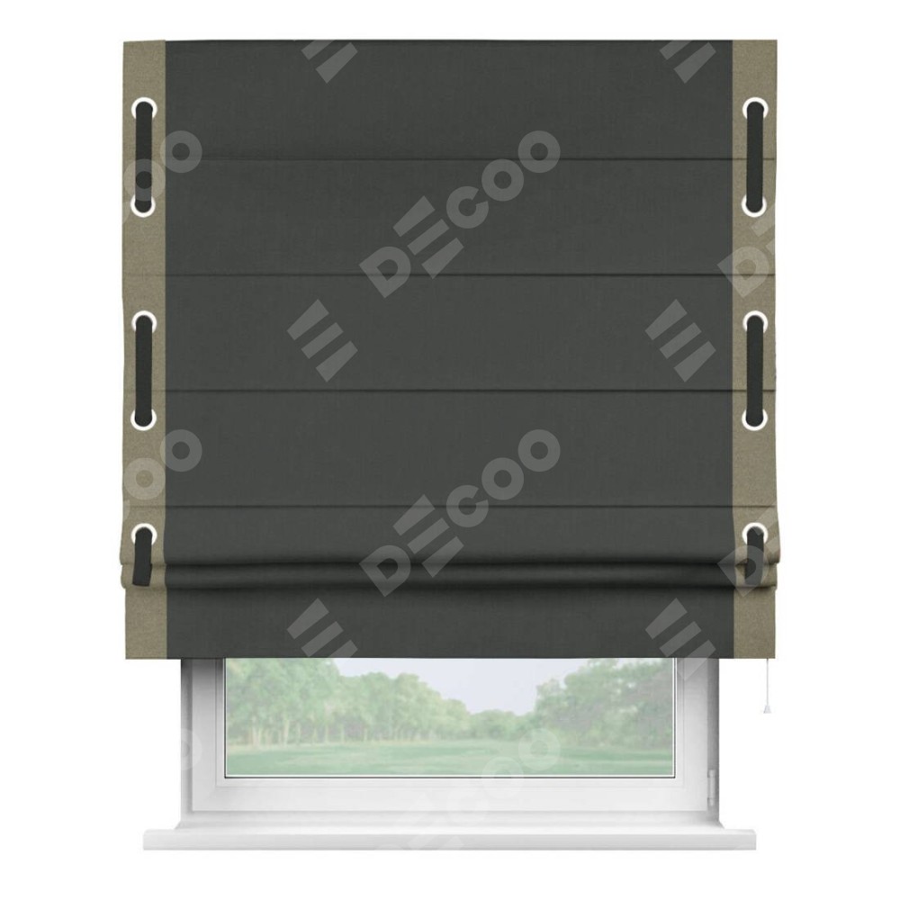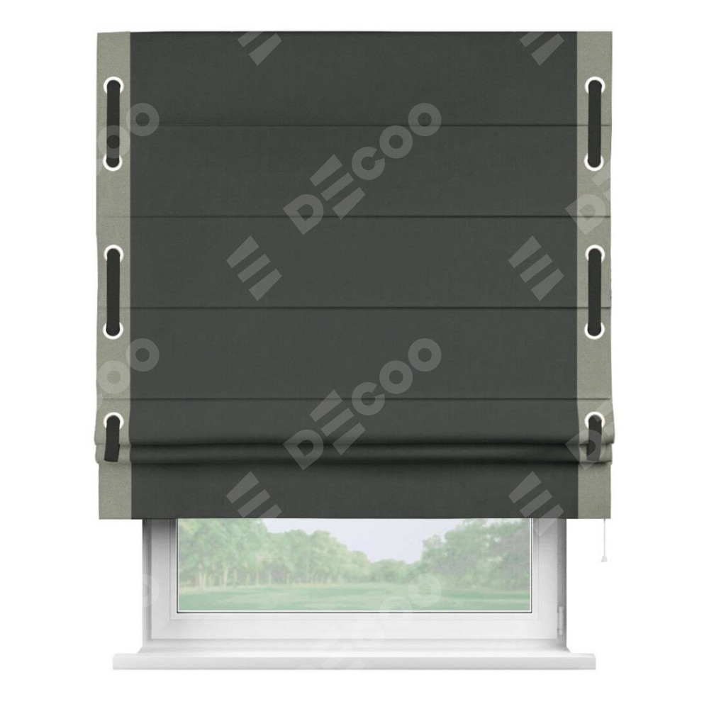 Римская штора «Кортин» с кантом Стрим Дуо (люверсы с пояском), для проема, лён блэкаут графит