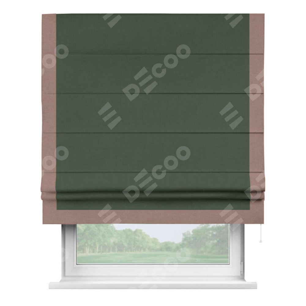 Римская штора «Кортин» с кантом Виктория, для проема, лён блэкаут зелёный
