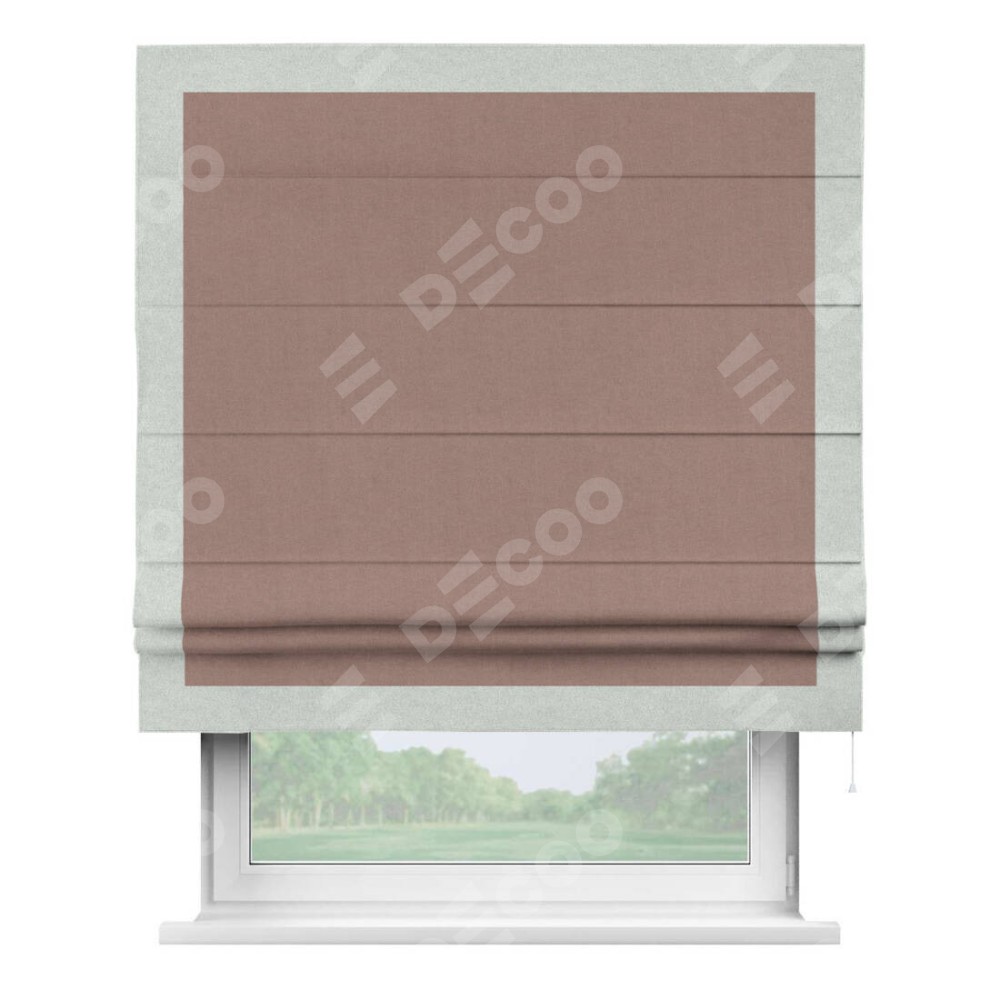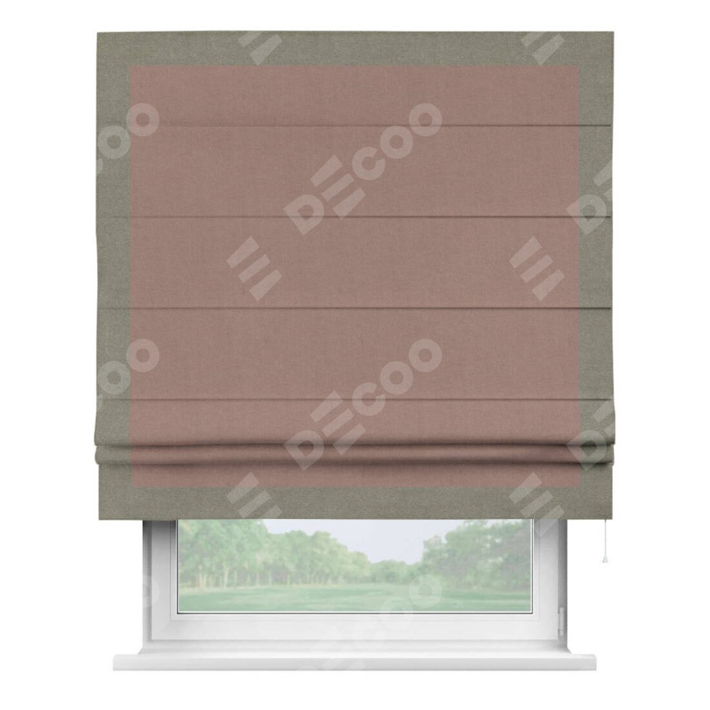 Римская штора «Кортин» с кантом Чесс, для проема, лён блэкаут розовый