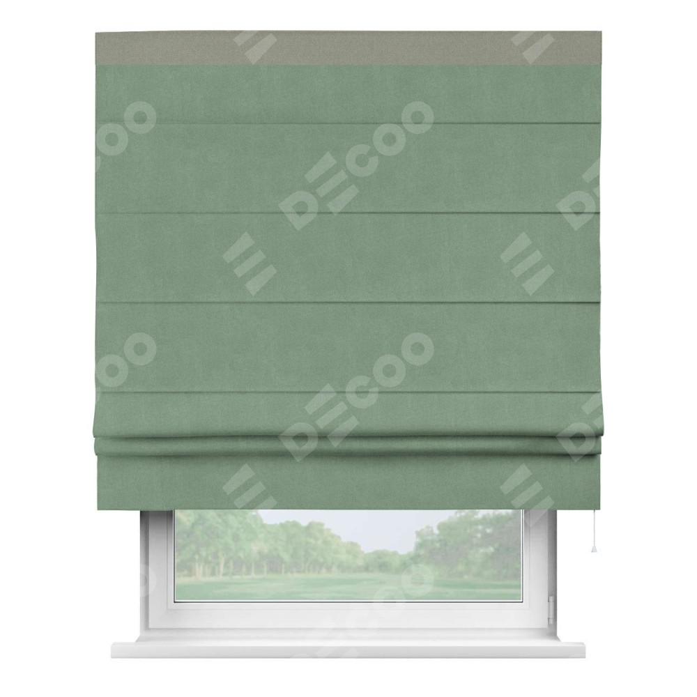 Римская штора «Кортин» с кантом Кинг, для проема, лён блэкаут светло-бирюзовый