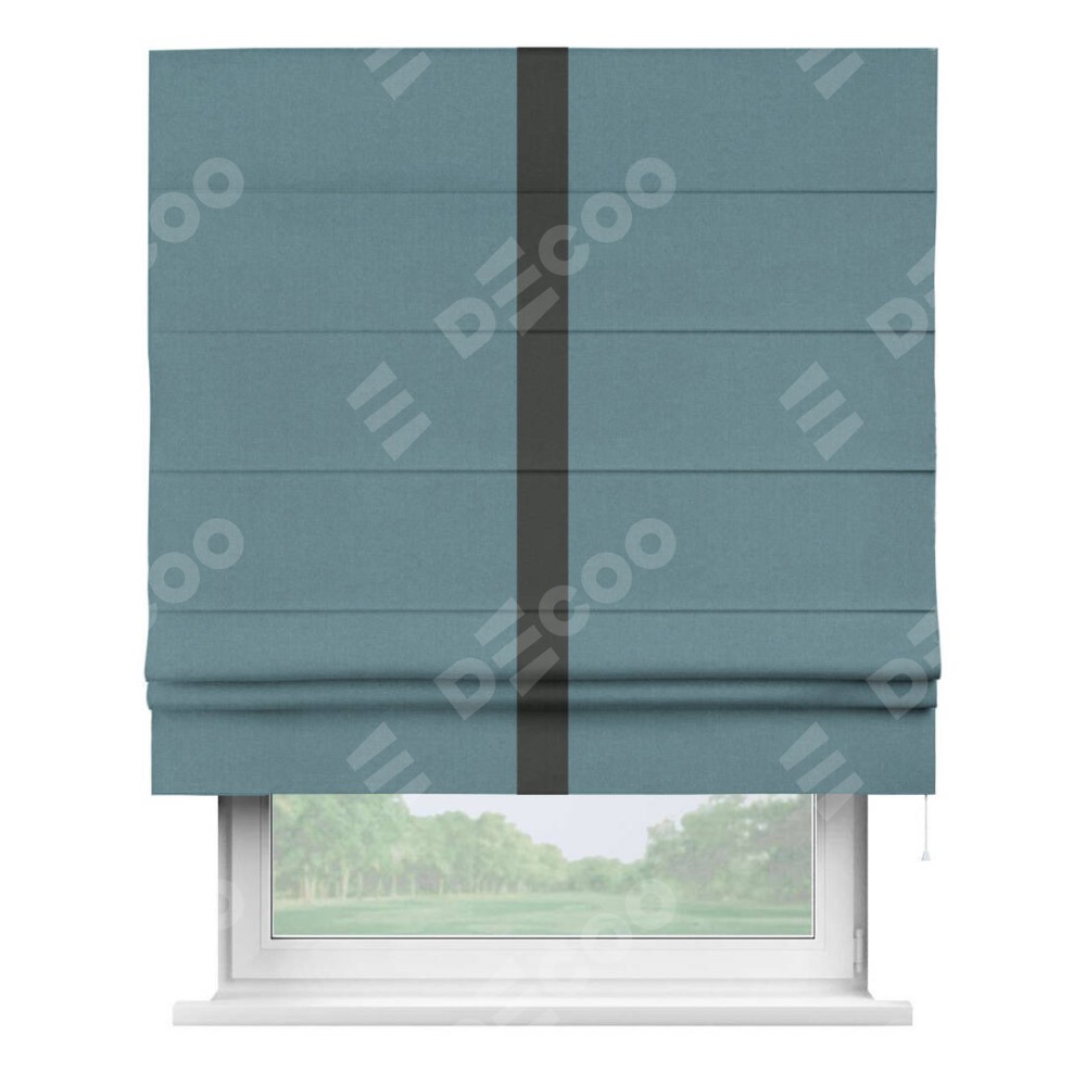 Римская штора «Кортин» с кантом Хайвэй, для проема, лён блэкаут синий