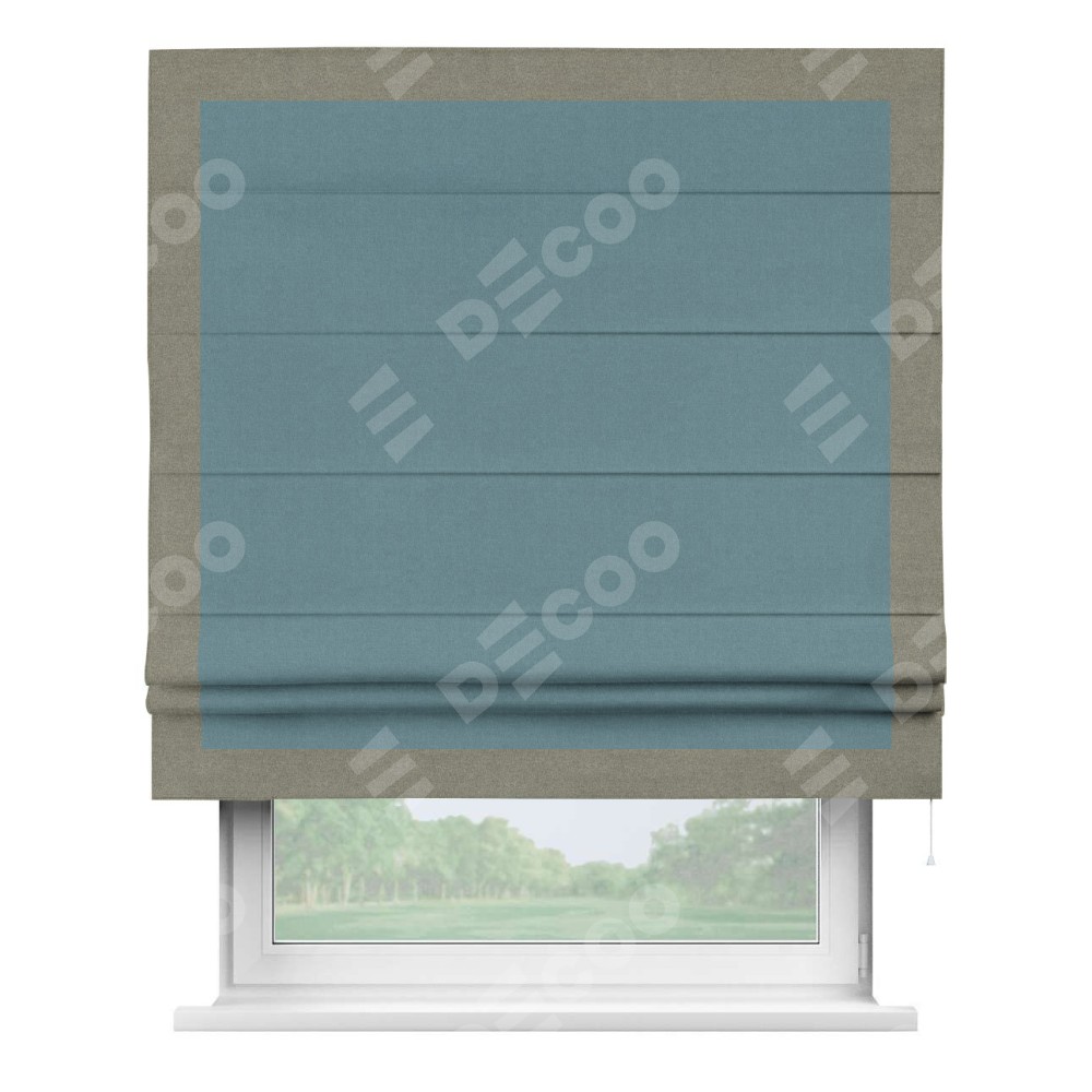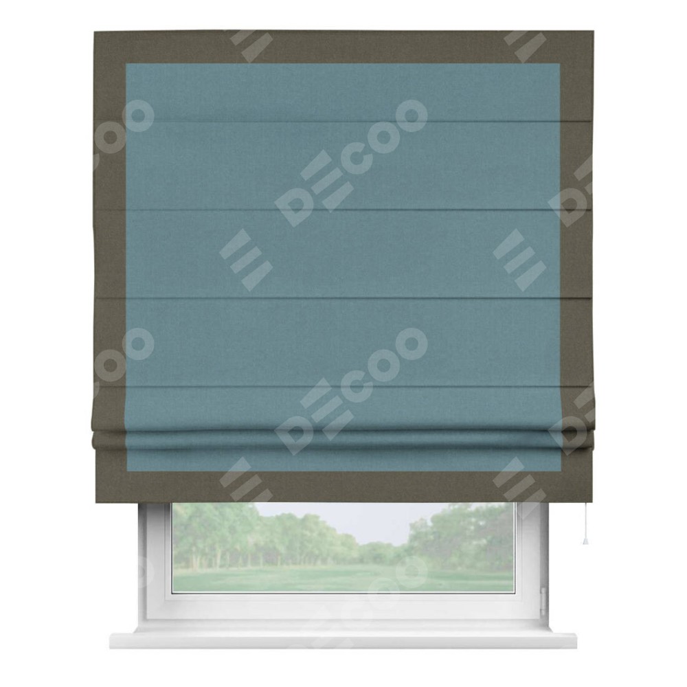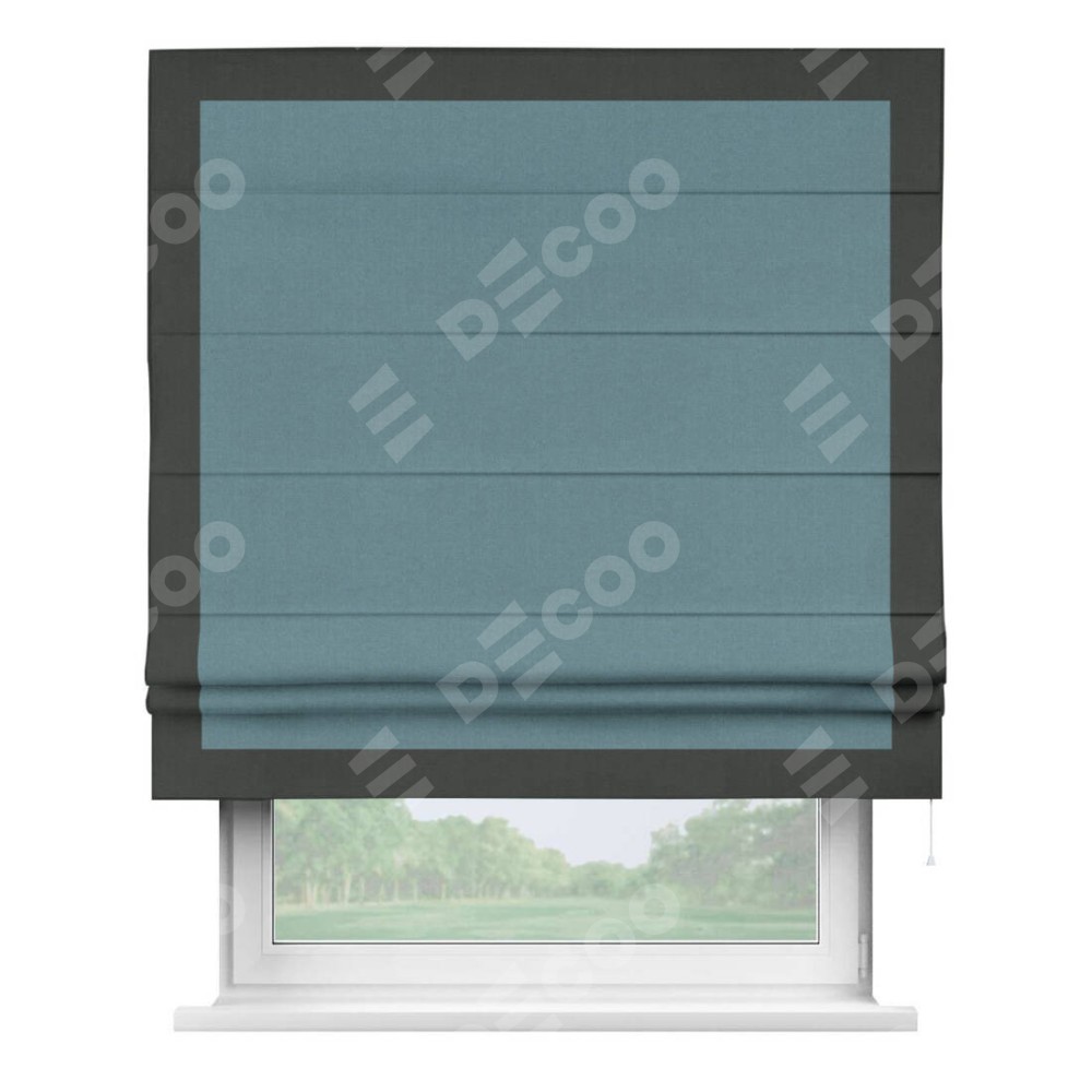 Римская штора «Кортин» с кантом Чесс, для проема, лён блэкаут синий