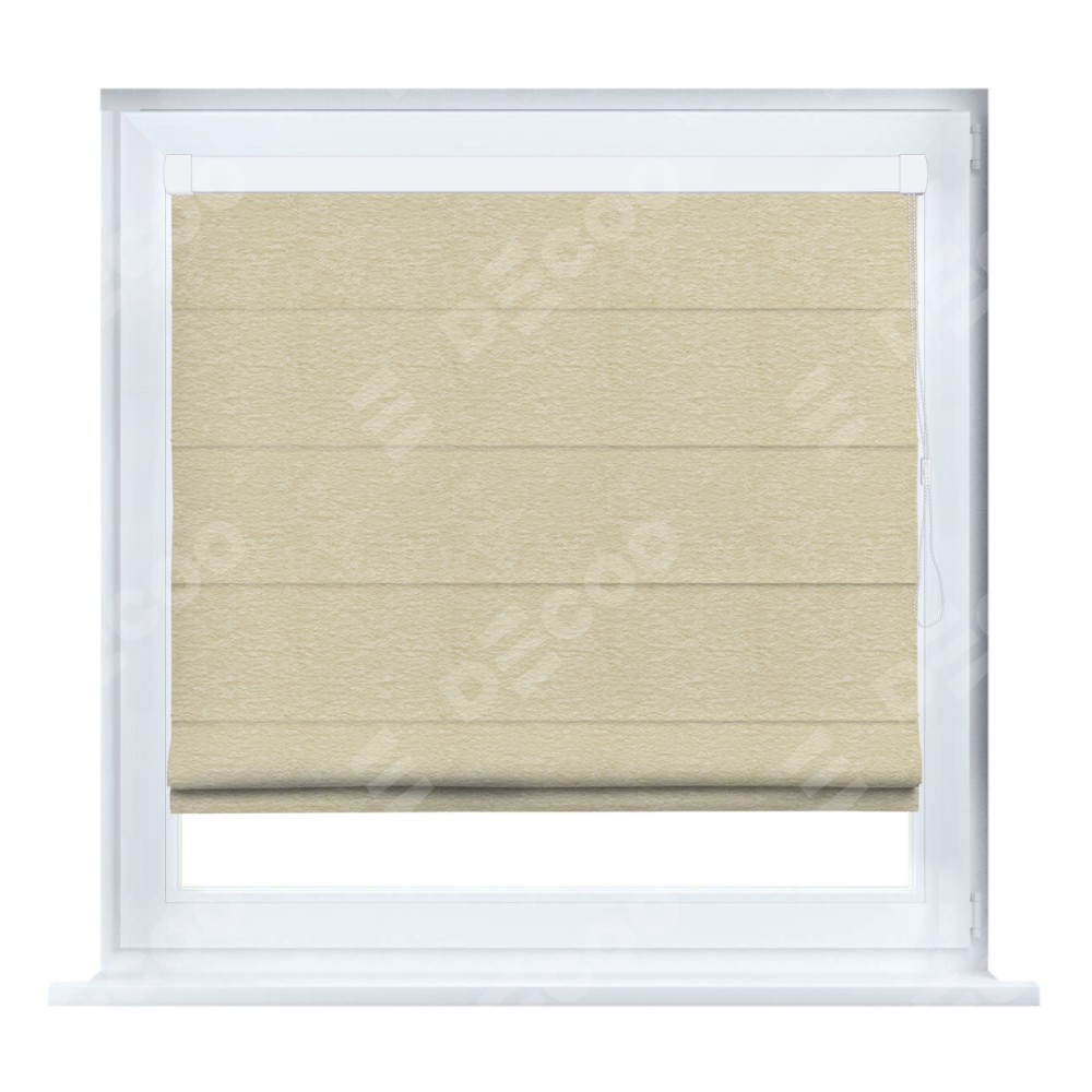 Римская штора кассетного типа, производителя «Cortin», устанавливается только на пластиковые окна и прилегает к стеклопакету, пошита из ткани софт однотонный светло-бежевый, артикул 54426.