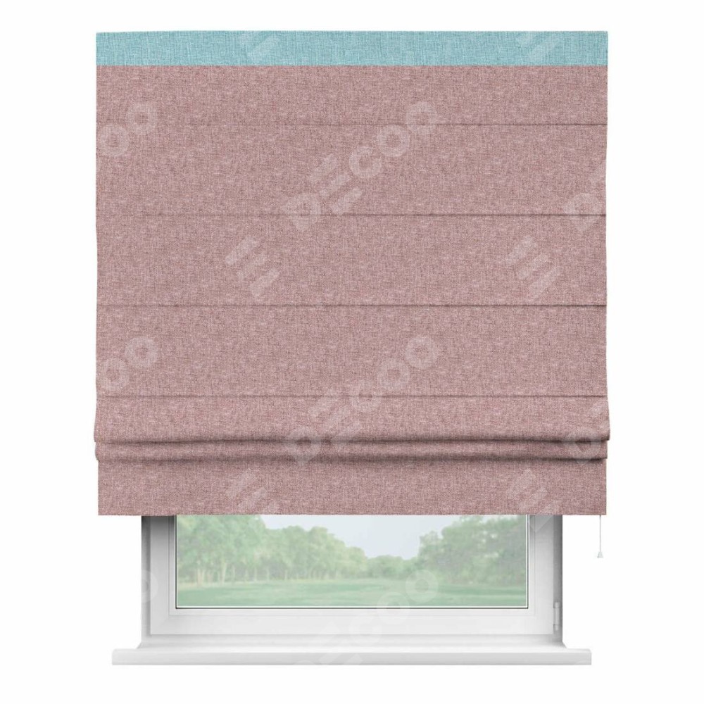 Римская штора производителя «Cortin», используется для проёма, пошита из ткани лён кашемир розовая пудра, артикул 21619. Отделка шторы кантом «Кинг», ткань для канта используется из льна разной расцветки на выбор. Имеет универсальный механизм и подходит для монтажа: на потолок, на стену и в нишу.