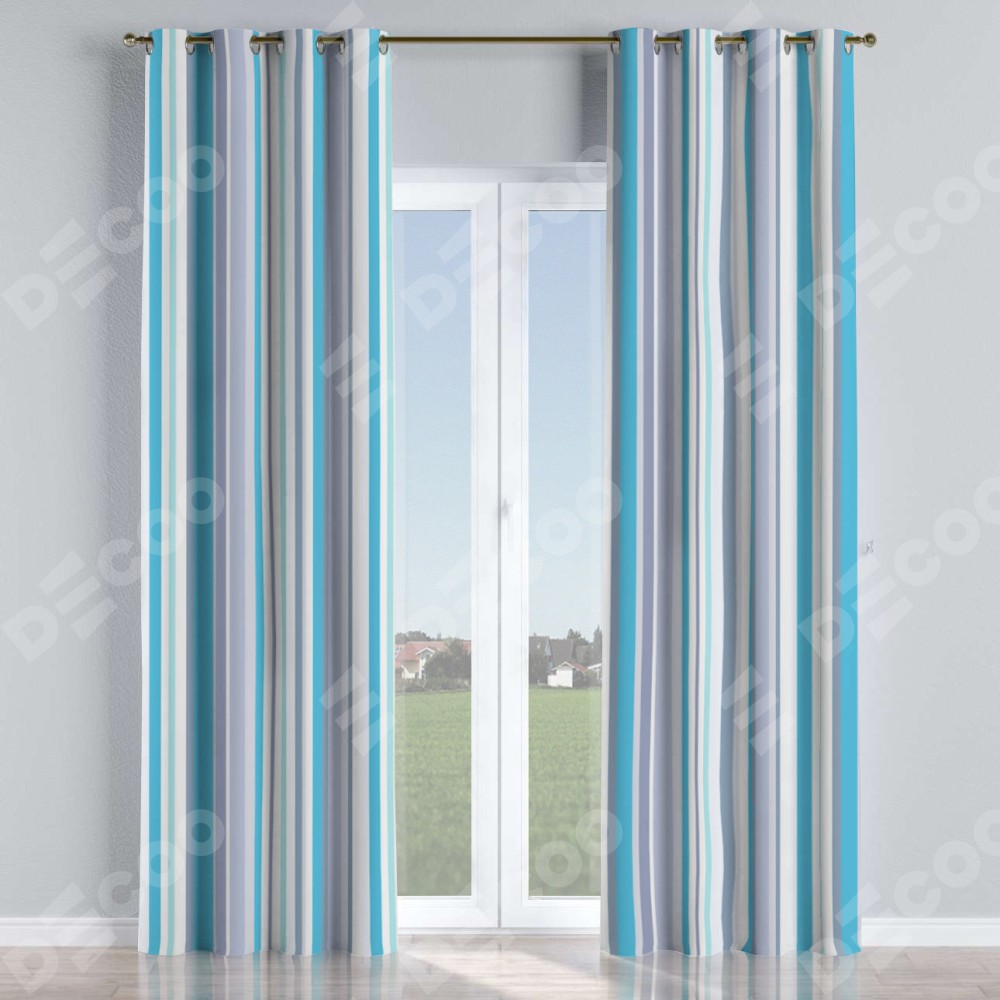 Комплект штор на люверсах «Морские линии» отлично подойдёт для интерьера комнату, кухня и загородный дом.