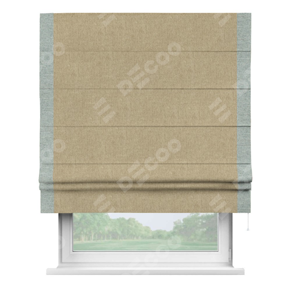 Римская штора производителя «Cortin», используется для проёма, пошита из ткани стиф димаут бежевый, артикул 18083. Отделка шторы кантом «Стрим Дуо», ткань для канта используется из стифа разной расцветки на выбор. Имеет универсальный механизм и подходит для монтажа: на потолок, на стену и в нишу.