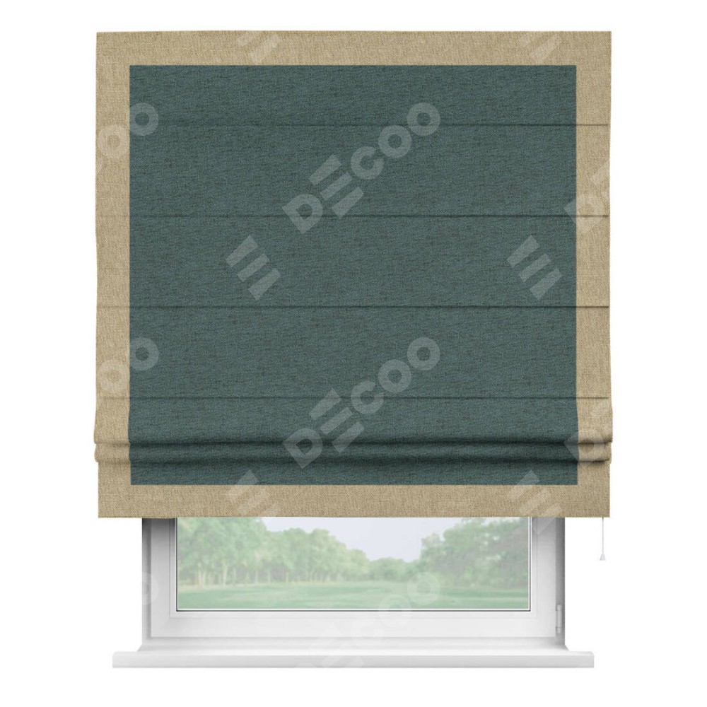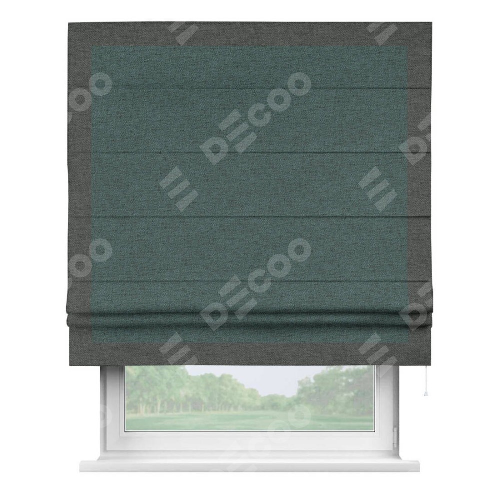 Римская штора «Кортин» с кантом Чесс, для проема, ткань стиф димаут сине-зелёный