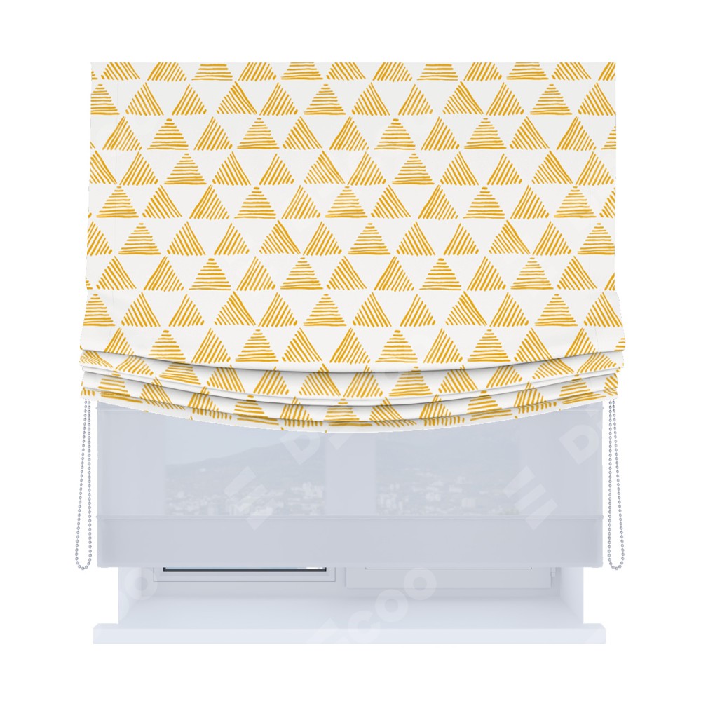 Римская штора «Кортин», день-ночь с мягкими складками, «Желтые треугольники»