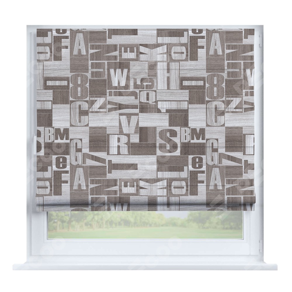 Римская штора производителя «Cortin», устанавливается на створку окна, пошита из ткани блэкаут с нанесением сублимационной печати «Литеры лофт». Штора шьётся по индивидуальным размерам, для данного типа римской шторы возможная ширина от 35 до 150 см., высота до 250 см.
