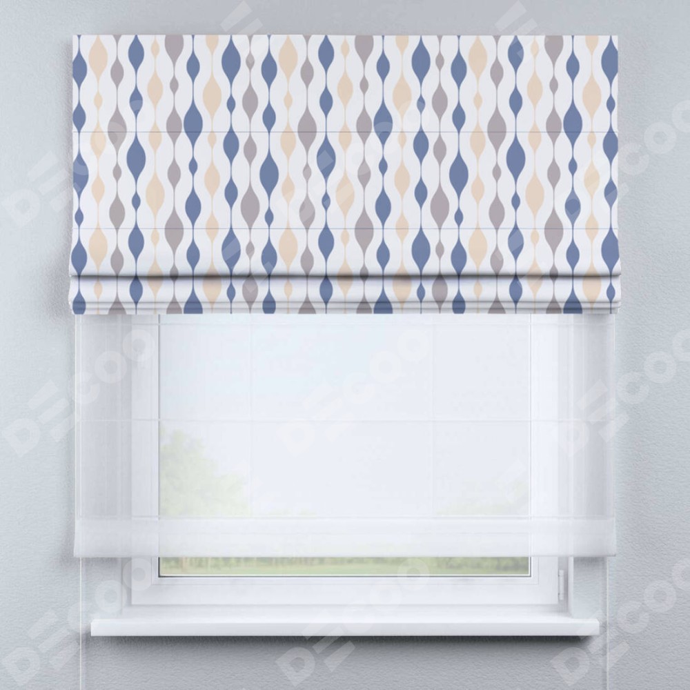 Римская штора день-ночь производителя «Cortin», используется для проёма, пошита из двух полотен, с лицевой блэкаут с нанесением сублимационной печати «Оскар», вторая ткань тюль (по стандарту комплектуется тюль белого цвета артикул V-01). Имеет универсальный механизм и подходит для монтажа: на потолок, на стену и в нишу.