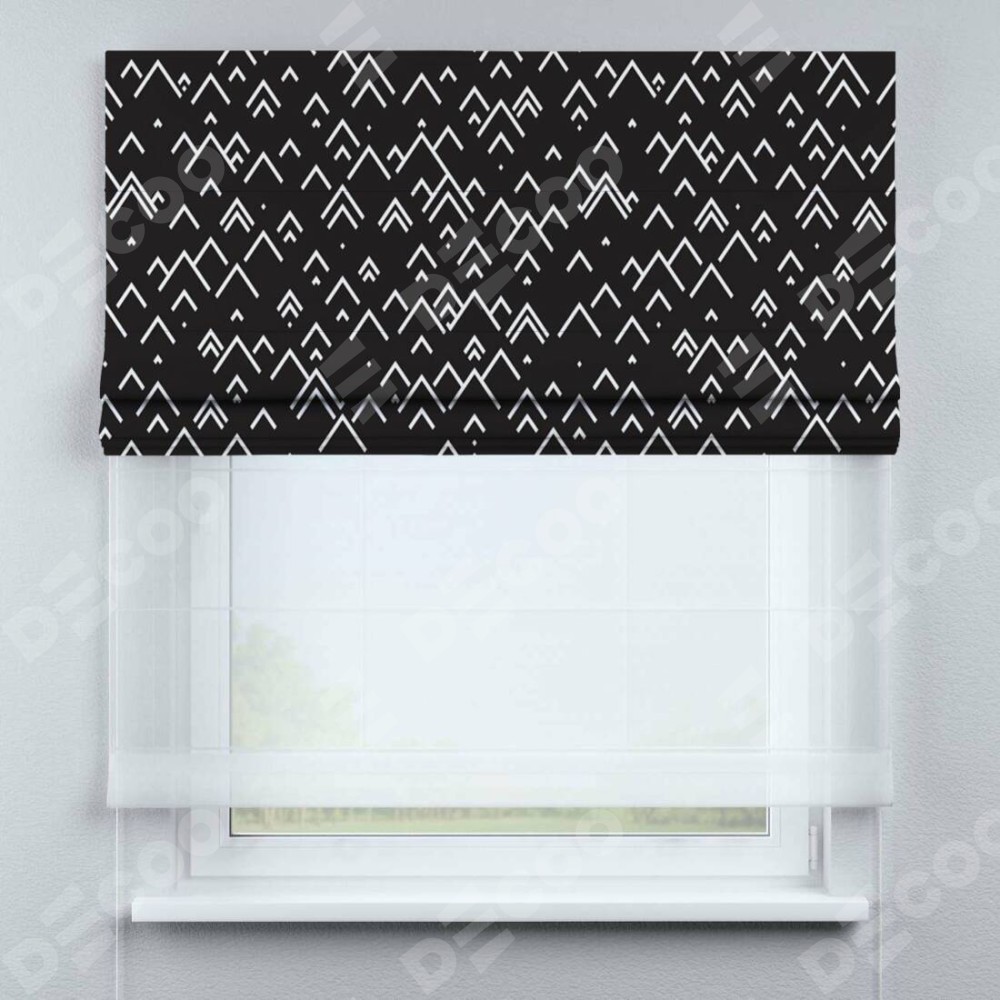 Римская штора «Кортин» день-ночь «Черно-белый минимализм» доступна к заказу по по вашим размерам. Её артикул: 25736. будет зависеть от заданных параметров и начинается от 5 300 руб. В интернет-магазине Decoo вы сможете заказать товар в любых размерных вариациях.
