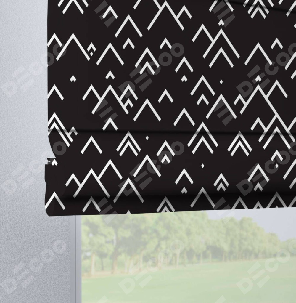 Римская штора на петлях «Черно-белый минимализм» отлично подойдёт для интерьера: в спальню, в кухню и в гостиную.