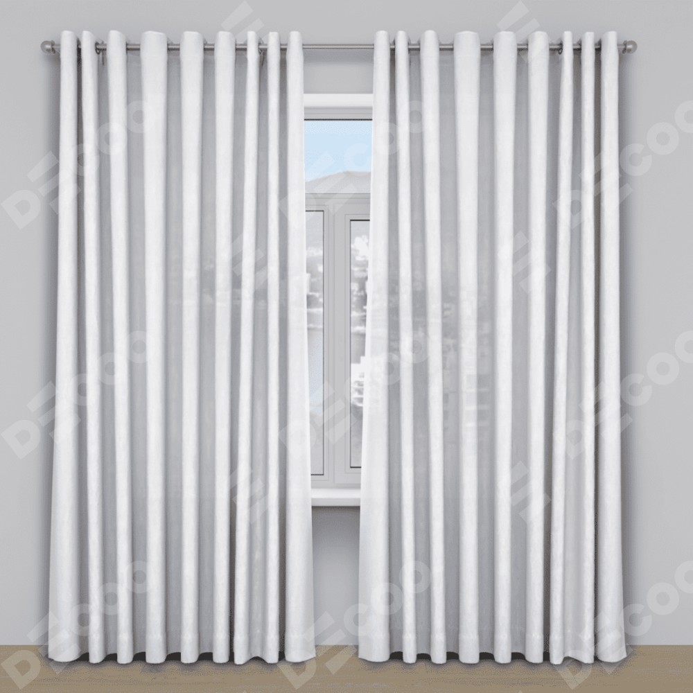 Шторы на люверсах ткань вельвет дымчато-белый отлично подойдёт для интерьера столовая, гостиная и загородный дом.
