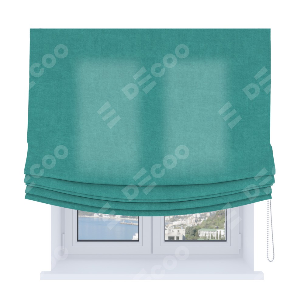 Римская штора «Кортин», канвас бирюзовый, Soft с мягкими складками