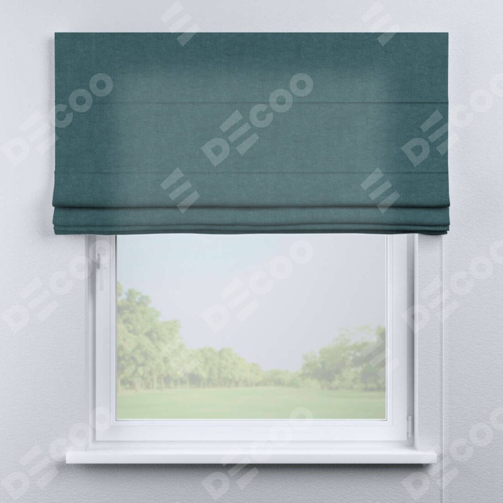 Римская штора производителя «Cortin», используется для проёма, пошита из ткани канвас ментоловый, артикул ткани v-114. Имеет универсальный механизм и подходит для монтажа: на потолок, на стену и в нишу.