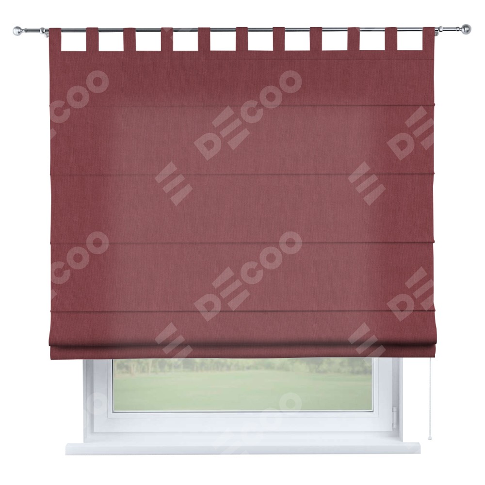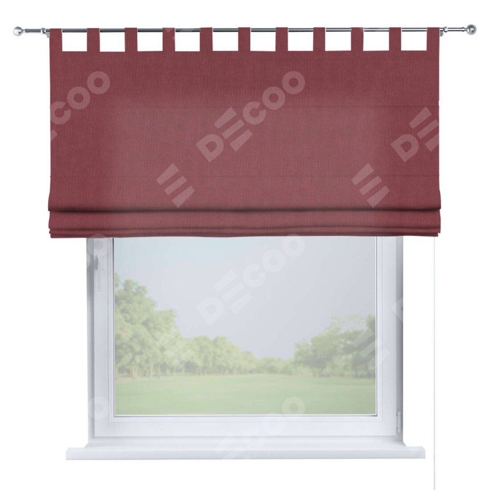 Римская штора производителя «Cortin», используется для проёма, пошита из ткани канвас ягодный, артикул ткани v-28. Данная модель пошита на петлях, комплектуется на выбор круглым карнизом и подходит для монтажа на стену. Римская штора на петлях имеет простую систему регулировки высоты, отличительным преимуществом данной модели является простой способ монтажа. Достаточно повесить ее на трубу и штора готова!