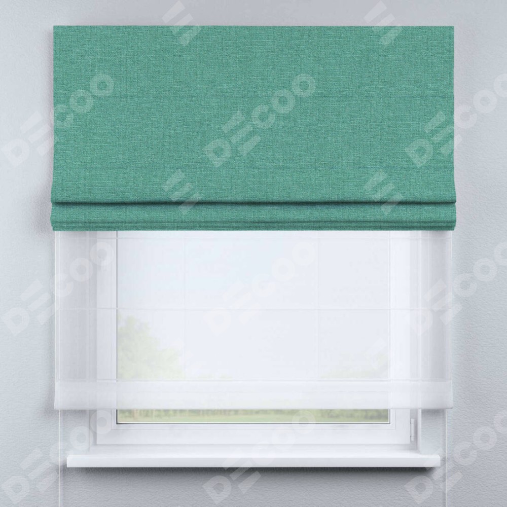 Римская штора «Кортин», лён светло-бирюзовый, день-ночь