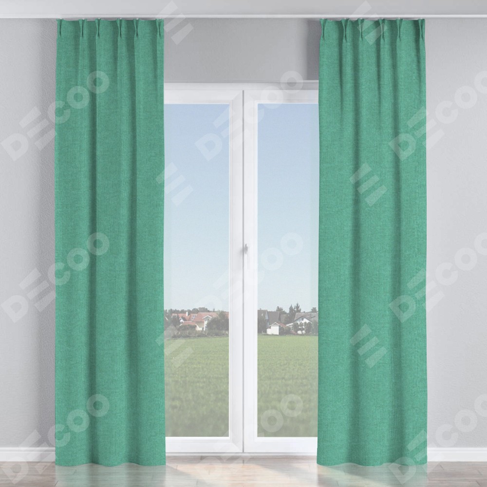 Комплект прямых штор, от производителя «Cortin», пошиты из ткани лён светло-бирюзовый, артикул ткани 53435. С изнаночной стороны в верхней части штор пристрачивается шторная лента с декоративными складками «Кустик». Для создания элегантных складок прямые шторы шьются по стандарту с коэффициентом 1:2 (на 100 см. ширины проёма 200 см. ширины ткани).