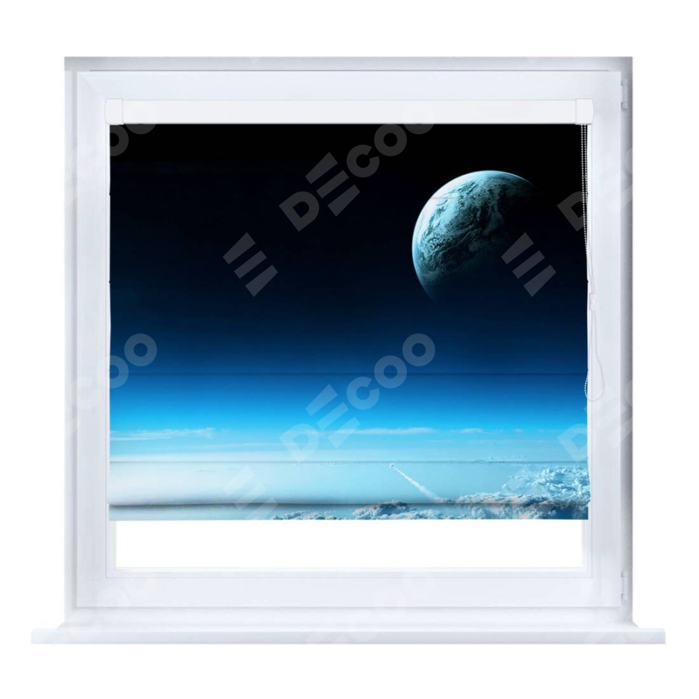 Римская штора «Кортин» на створку «Горизонты вселенной» отлично подойдёт для интерьера: подростку в комнату, в детскую и на балкон.