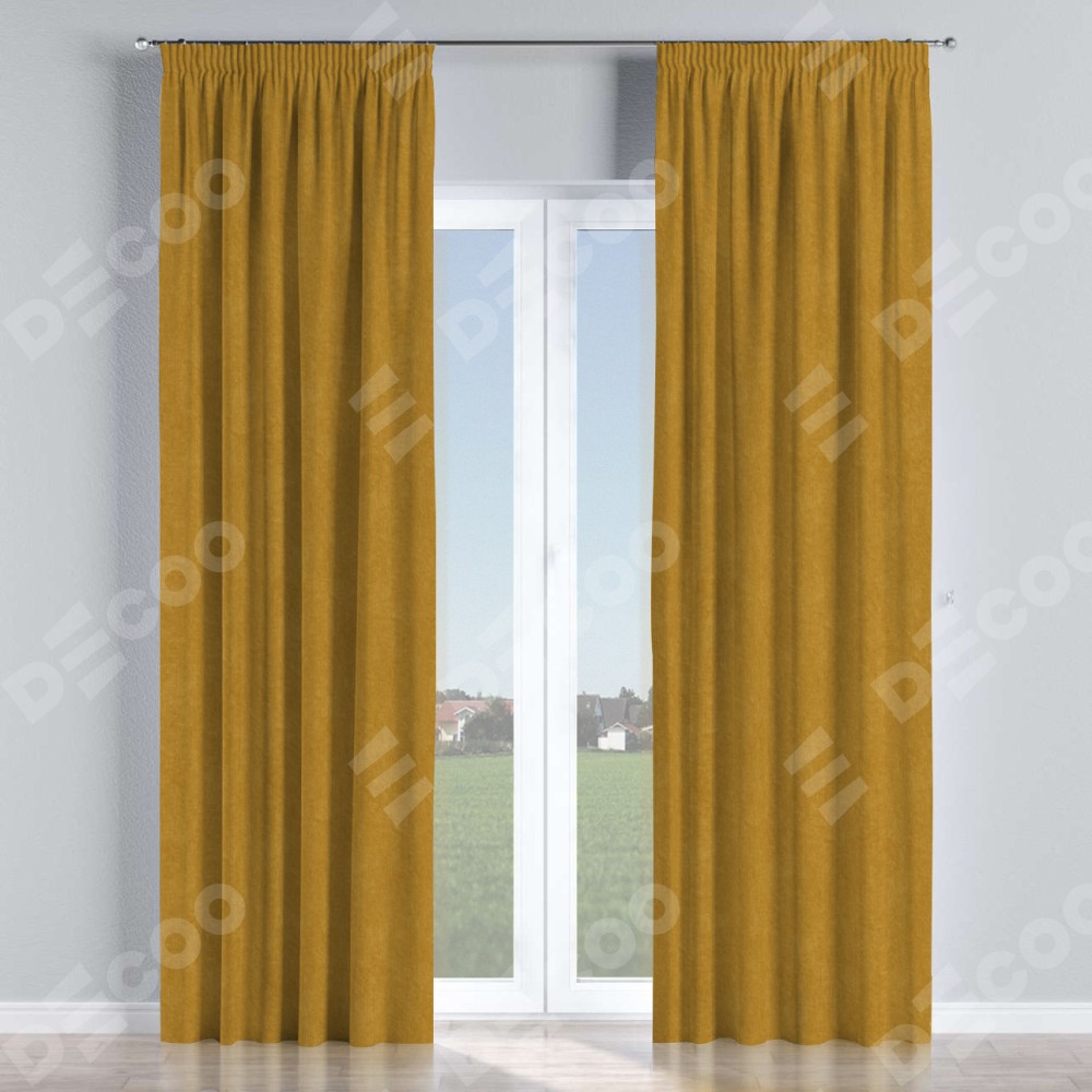 Комплект штор канвас горчица, на тесьме «Карандаш»