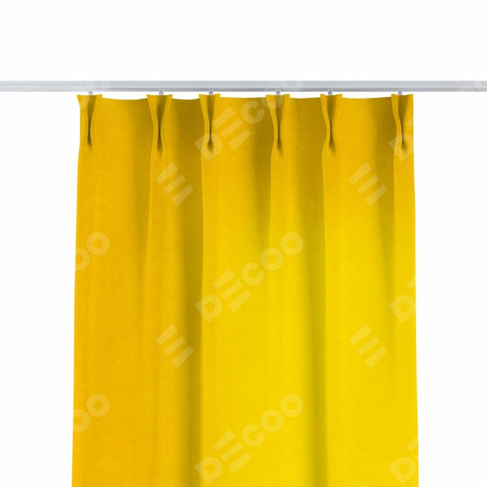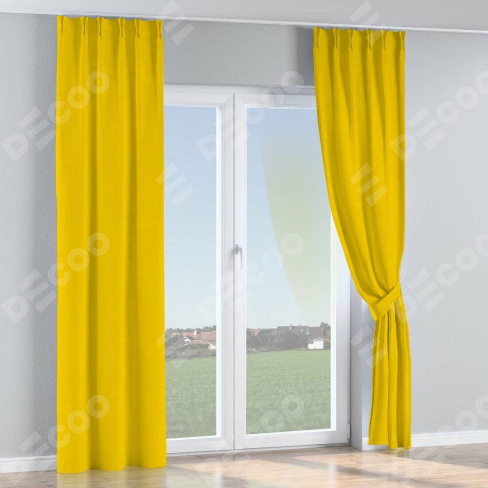 Комплект прямых штор, от производителя «Cortin», пошиты из ткани канвас желтый, артикул ткани v-344. С изнаночной стороны в верхней части штор пристрачивается шторная лента с декоративными складками «Кустик». Для создания элегантных складок прямые шторы шьются по стандарту с коэффициентом 1:2 (на 100 см. ширины проёма 200 см. ширины ткани).