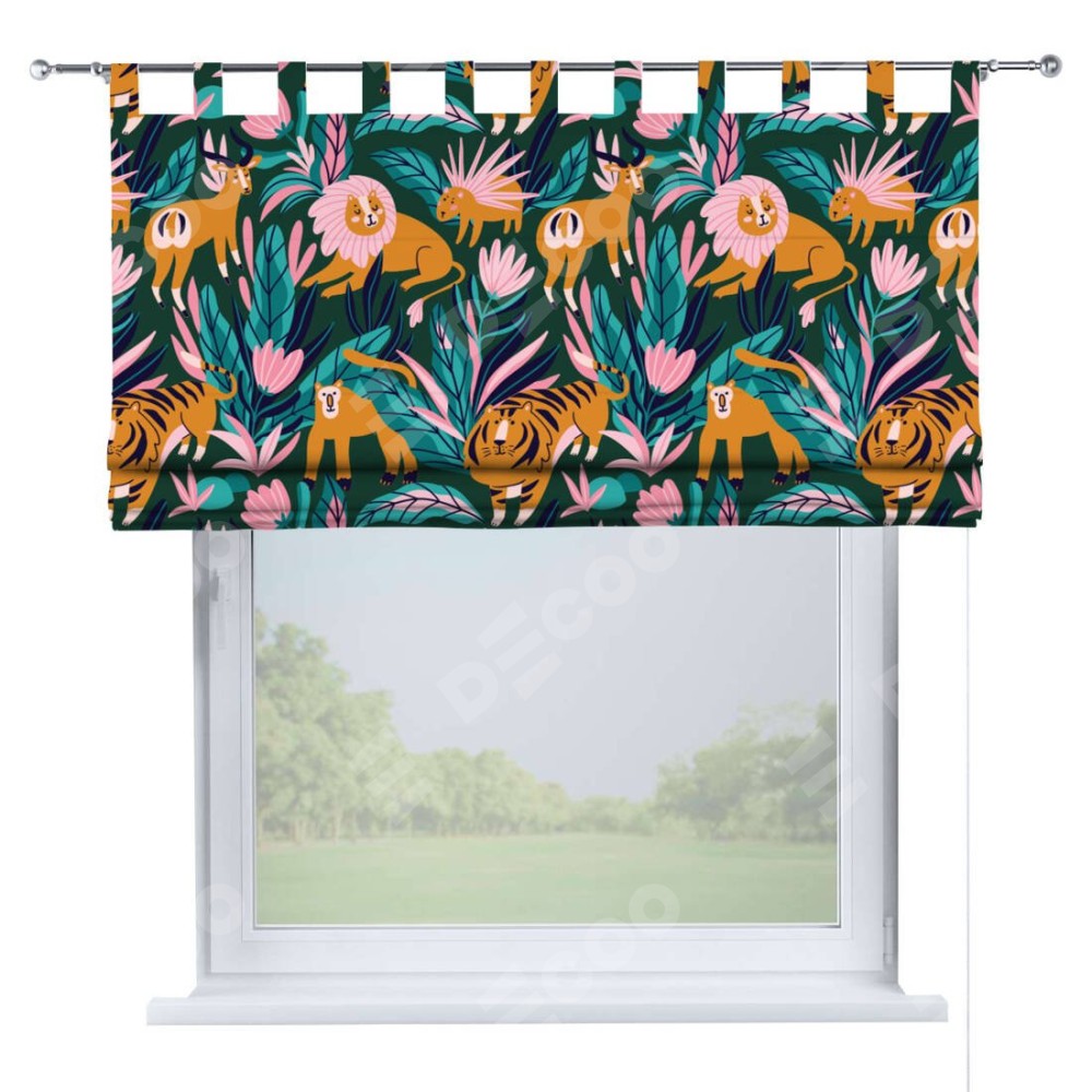 Римская штора производителя «Cortin», используется для проёма, пошита из ткани блэкаут с нанесением сублимационной печати «Дикие животные». Данная модель пошита на петлях, комплектуется на выбор круглым карнизом и подходит для монтажа на стену. Римская штора на петлях имеет простую систему регулировки высоты, отличительным преимуществом данной модели является простой способ монтажа. Достаточно повесить ее на трубу и штора готова!
