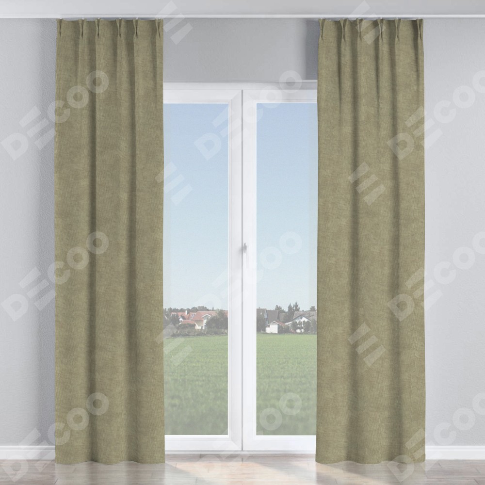 Комплект прямых штор, от производителя «Cortin», пошиты из ткани канвас капучино, артикул ткани v-211. С изнаночной стороны в верхней части штор пристрачивается шторная лента с декоративными складками «Кустик». Для создания элегантных складок прямые шторы шьются по стандарту с коэффициентом 1:2 (на 100 см. ширины проёма 200 см. ширины ткани).