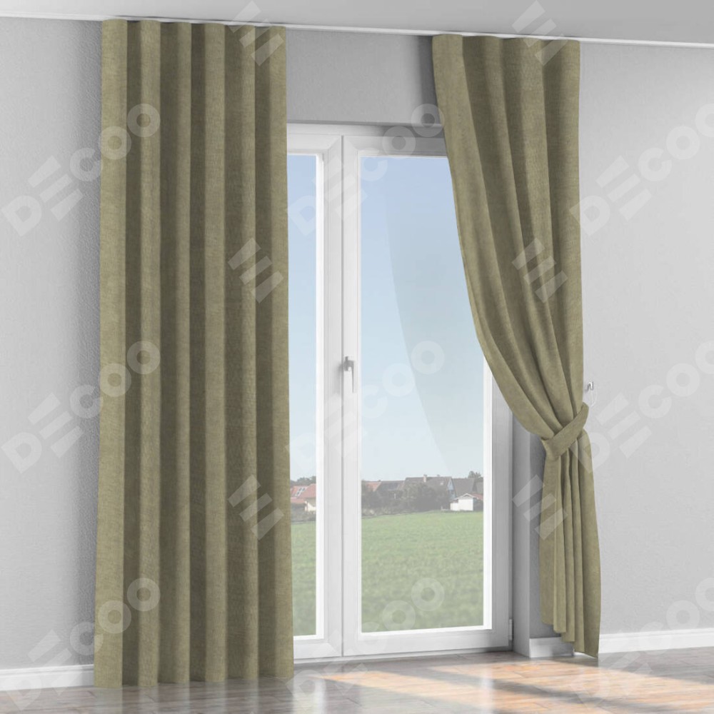 Комплект прямых штор, от производителя «Cortin», пошиты из ткани канвас капучино, артикул ткани v-211. С изнаночной стороны в верхней части штор пристрачивается шторная лента с декоративными складками «Волна». Для создания элегантных складок прямые шторы шьются по стандарту с коэффициентом 1:2 (на 100 см. ширины проёма 200 см. ширины ткани).