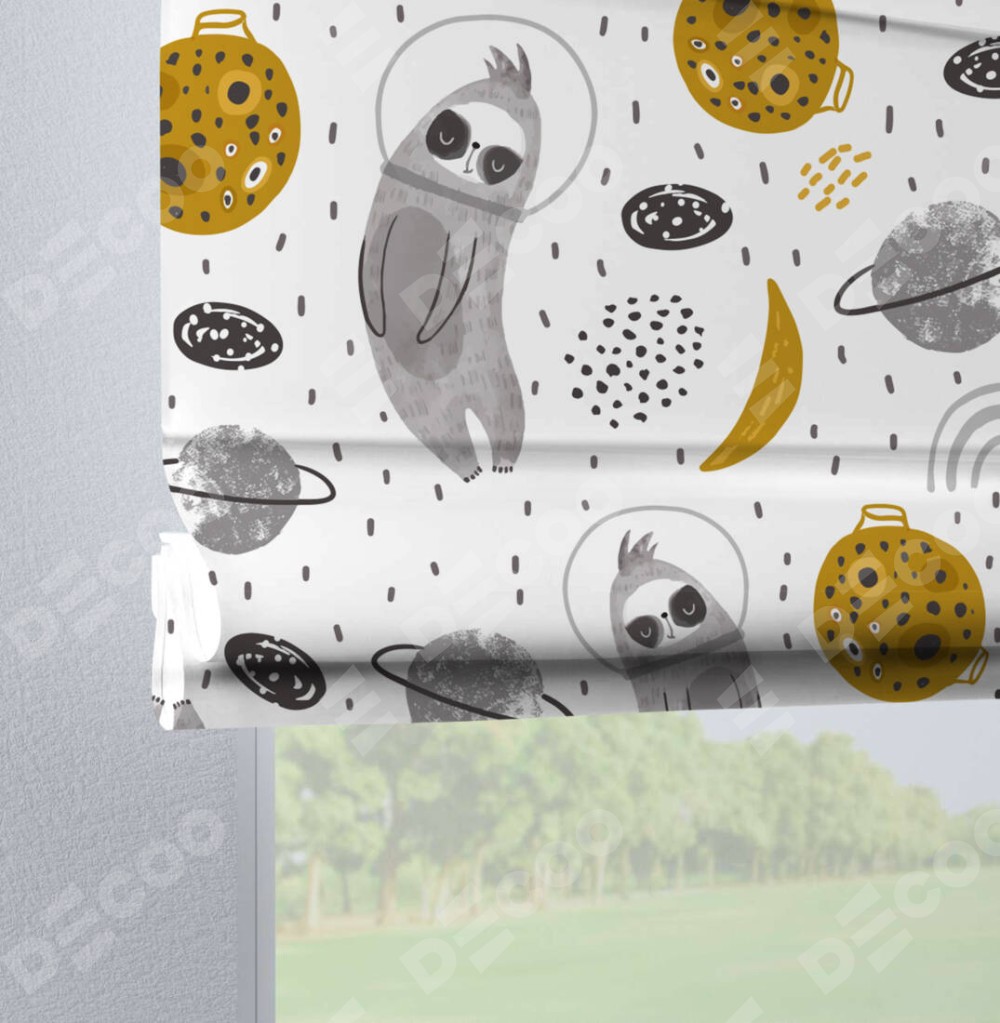 Римская штора «Кортин» на петлях «Ленивец в шлеме» отлично подойдёт для интерьера: в детскую.